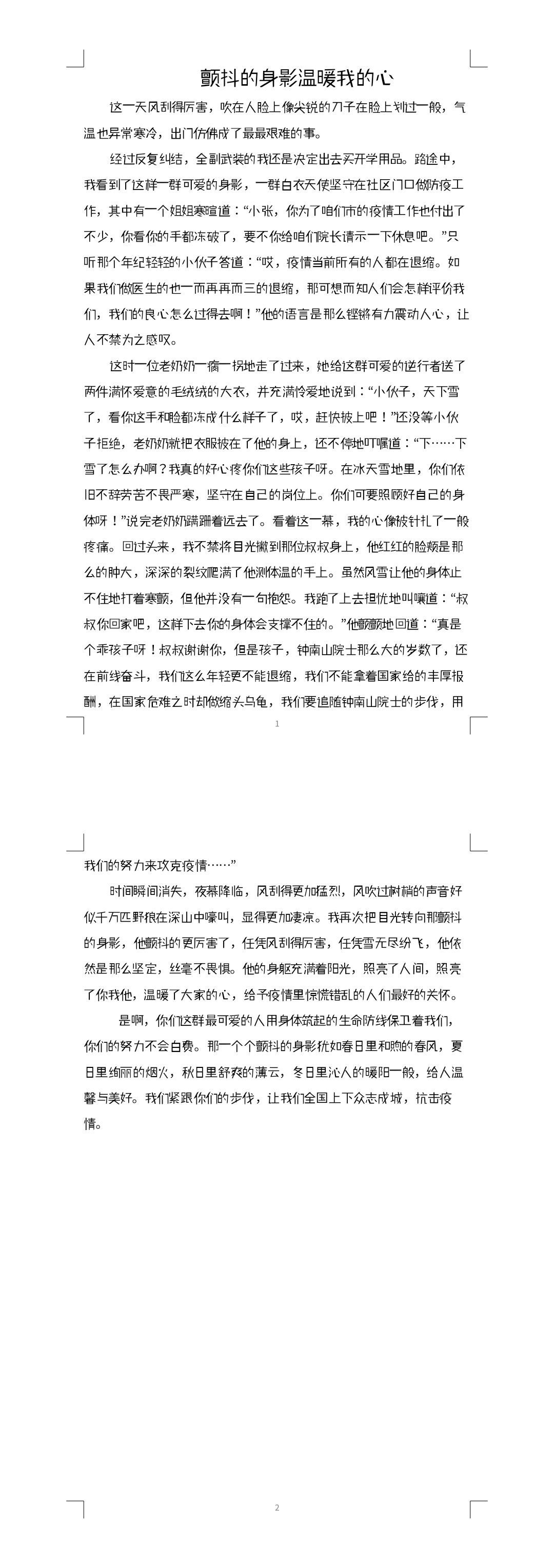 (1) 颤抖的身影温暖我的 眉批:开头不够精练。