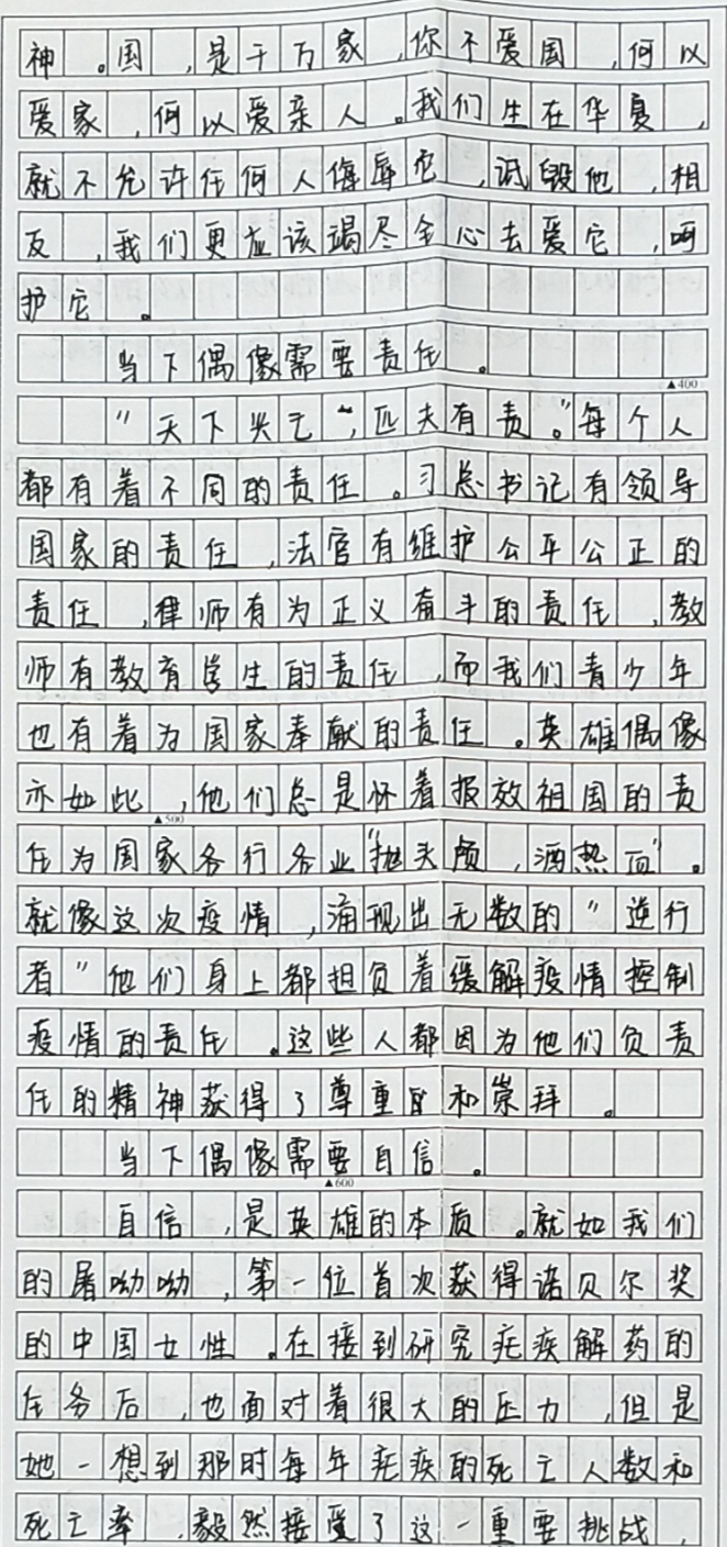 最好的偶像,就在当下 热664 类别:议论 发表时间:2020-07-17 11:29 已有 665 次阅读 指导老师:王子 所属学校:中牟县第三高级中学