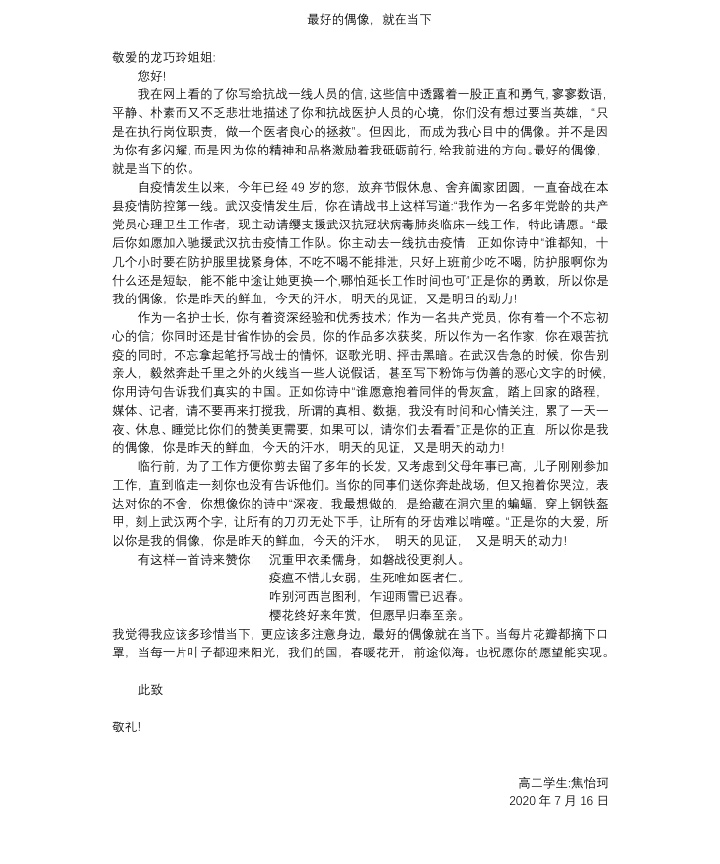 最好的偶像,就在当下 热603 类别:其他 发表时间:2020-07-26 20:57 已有 604 次阅读 指导老师:贴花 所属学校:河南省巩义中学