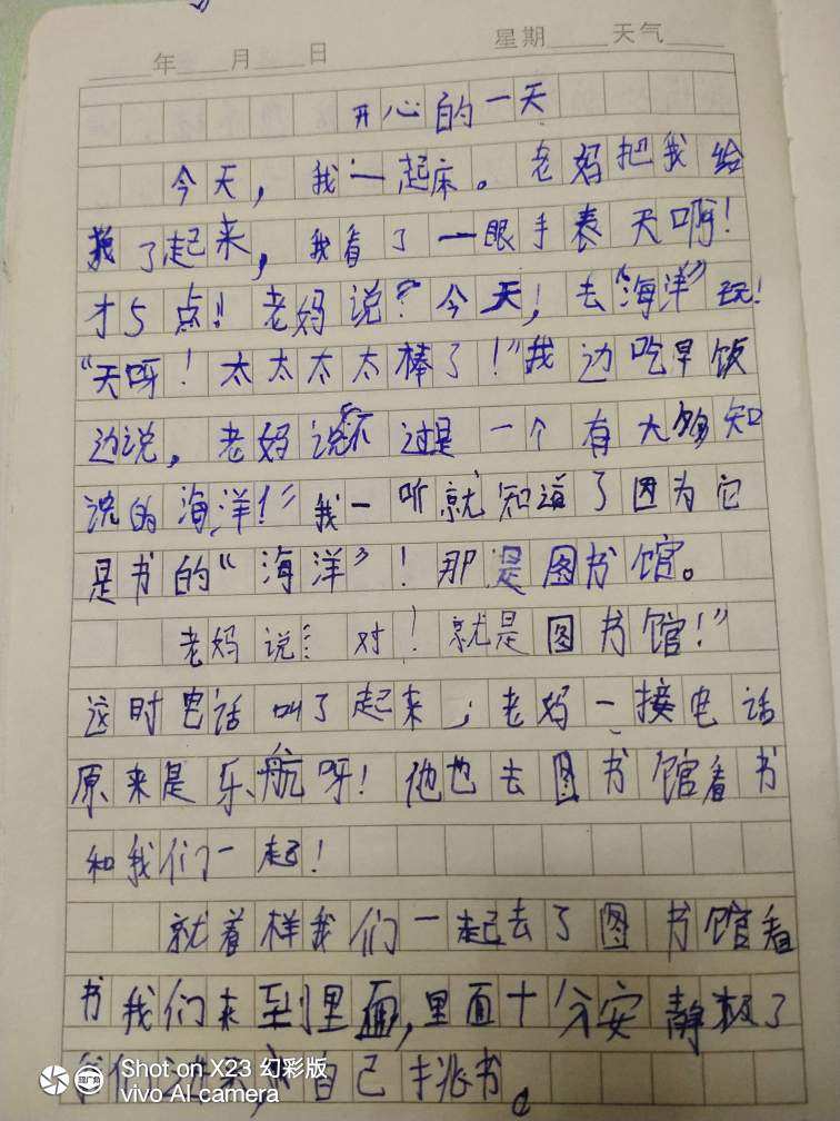 开心的一天 热421 类别:抒情 发表时间:2021-07-25 23:11 已有 422 次阅读 指导老师:付秋艳 所属学校:金水区文化绿城小学