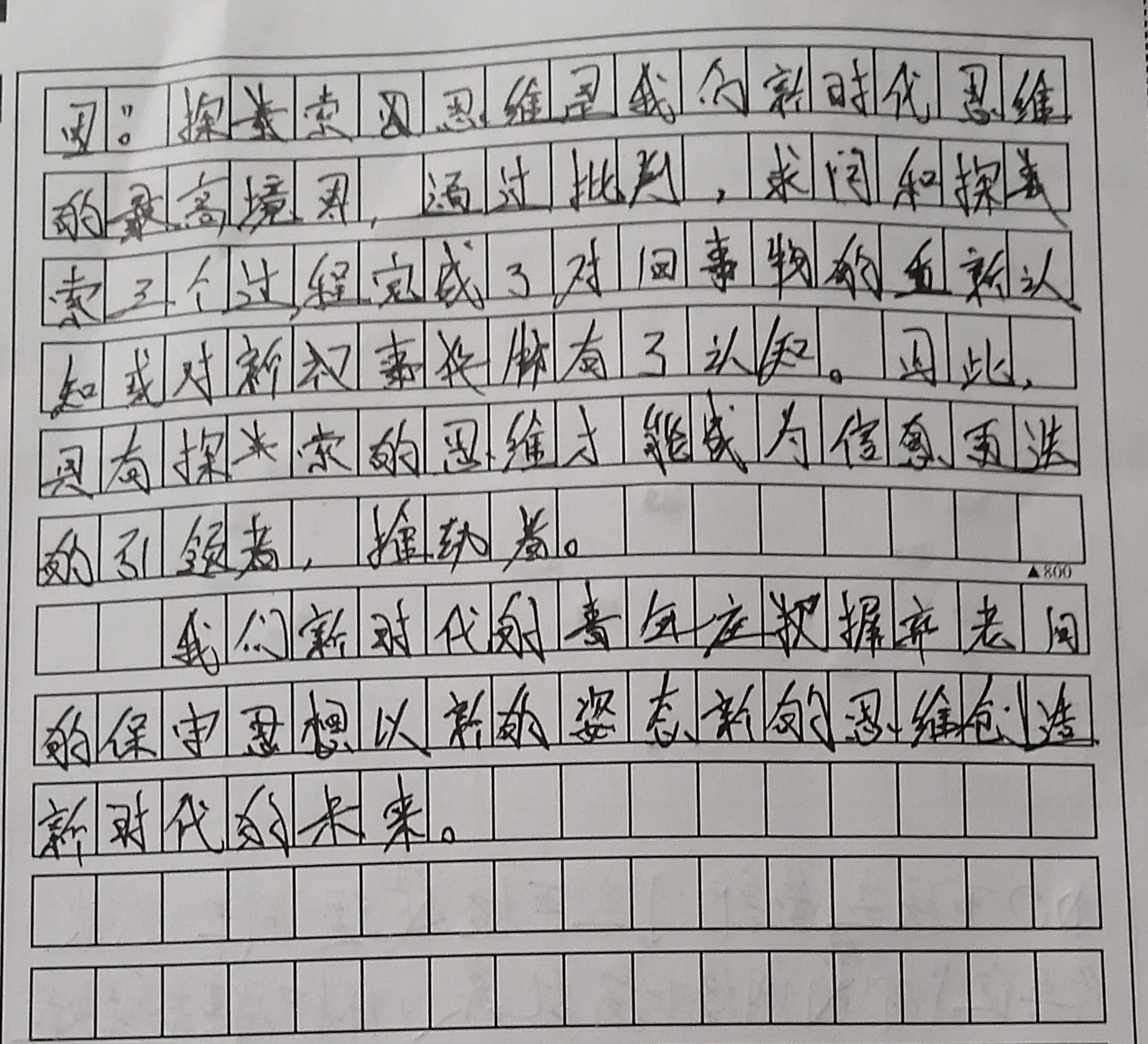 新时代,新思维 热774 类别:议论 发表时间:2020-08-02 06:46 已有 775 次阅读 指导老师:李梦珂 所属学校:中牟县第三高级中学