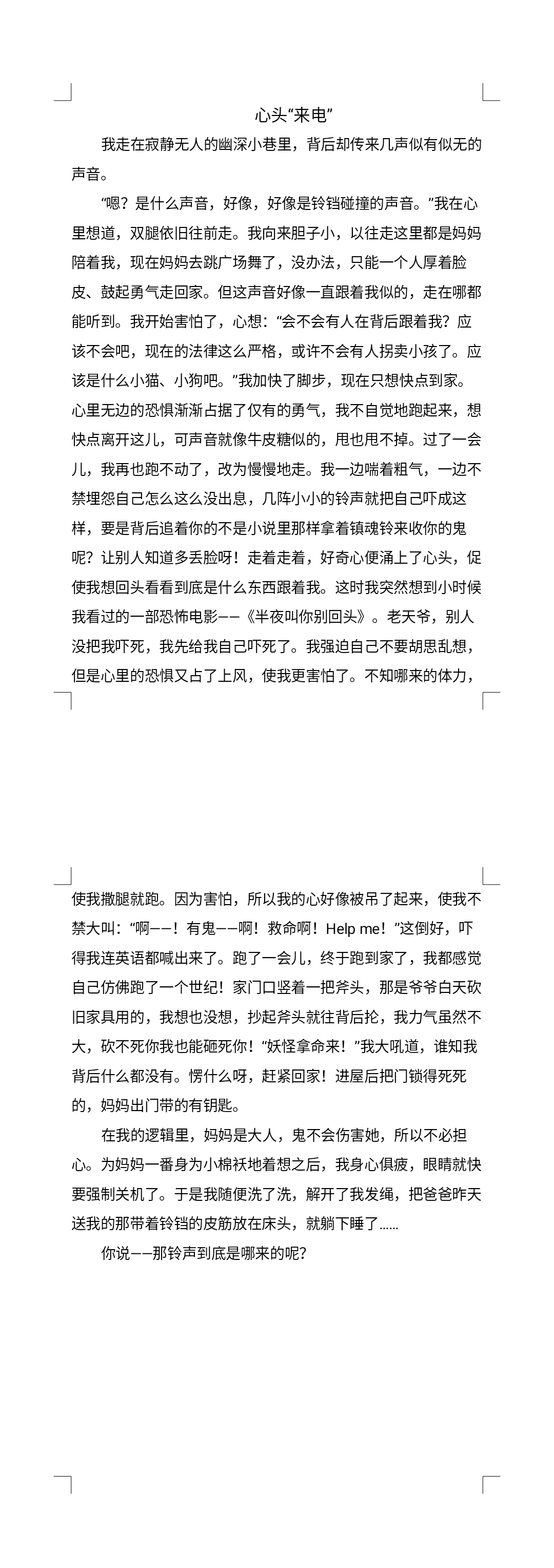 心头“来电” 热404 类别:叙事 发表时间:2020-08-01 10:51 已有 405 次阅读 指导老师:郭东昊 所属学校:新中镇茶店小学