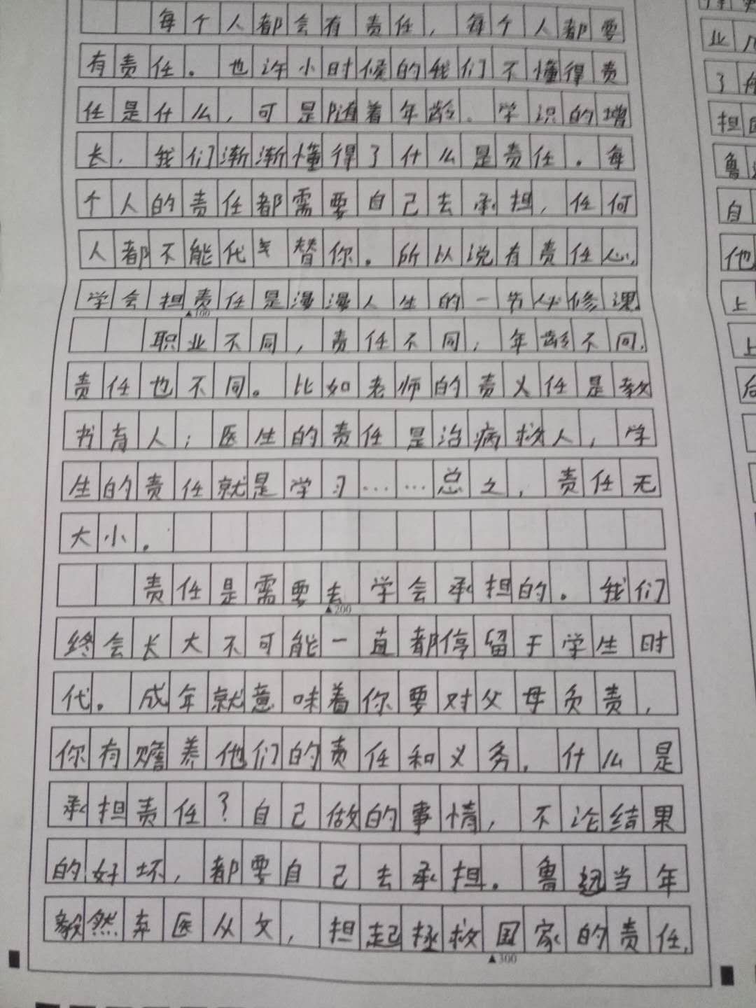 责任是人生的必修课 热289 类别:议论 发表时间:2020-08-01 22:48 已有 290 次阅读 指导老师:张燕 所属学校:中牟县第三高级中学