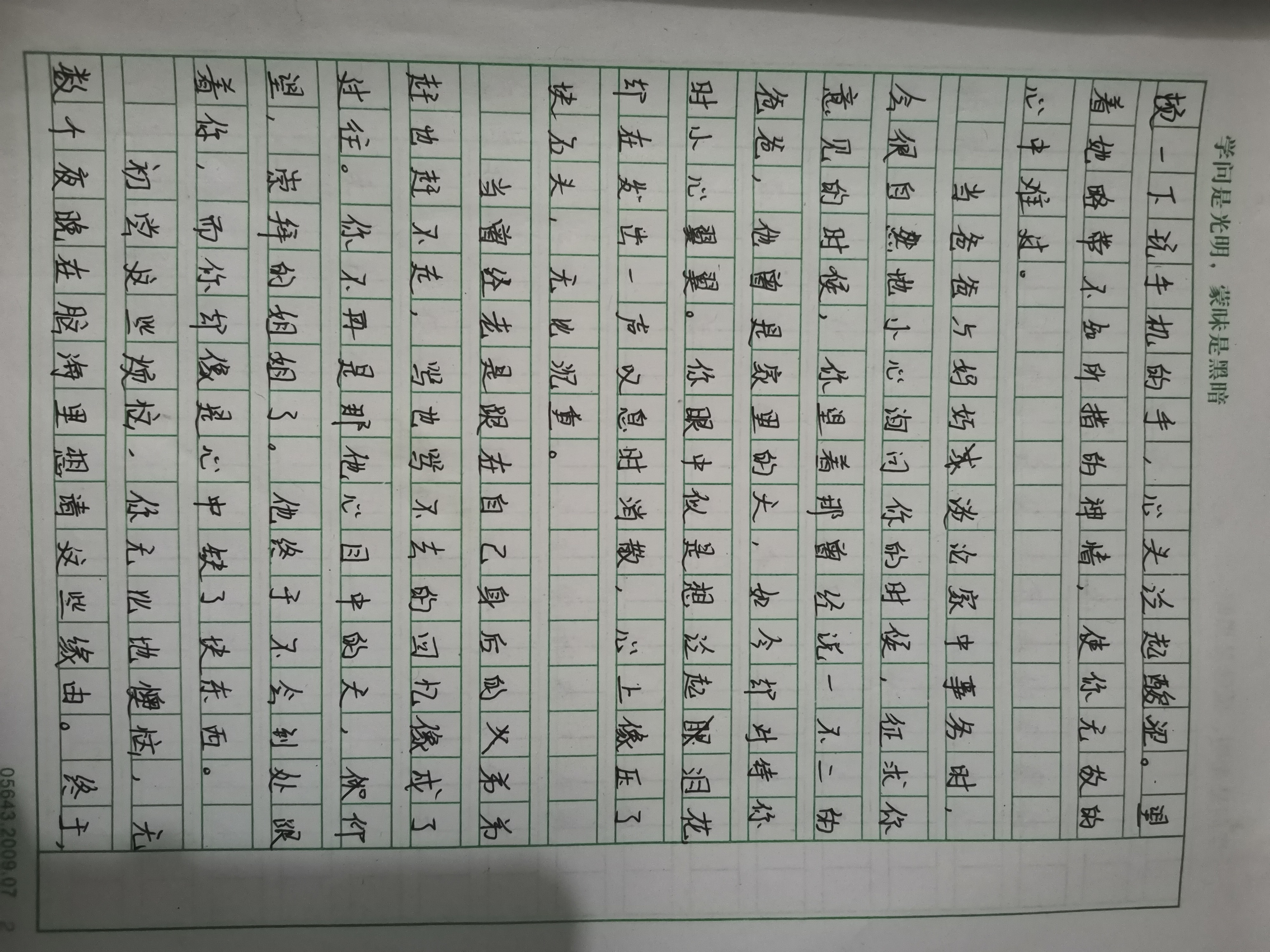 版权说明: A类权限 我谨保证我是此作品的著作权人,并且此作品系首发于郑州教育信息网作文博览频道。我同意郑州教育信息网作文博览频道作为此作品版权的独占代理人。在撤销本委托之前,我不再将此作品投给其他媒体,有关此作品发表和转载等任何事宜,由郑州教育信息网作文博览频道全权负责。未经郑州教育信息网作文博览频道转授权,其他媒体一律不得转载。 |