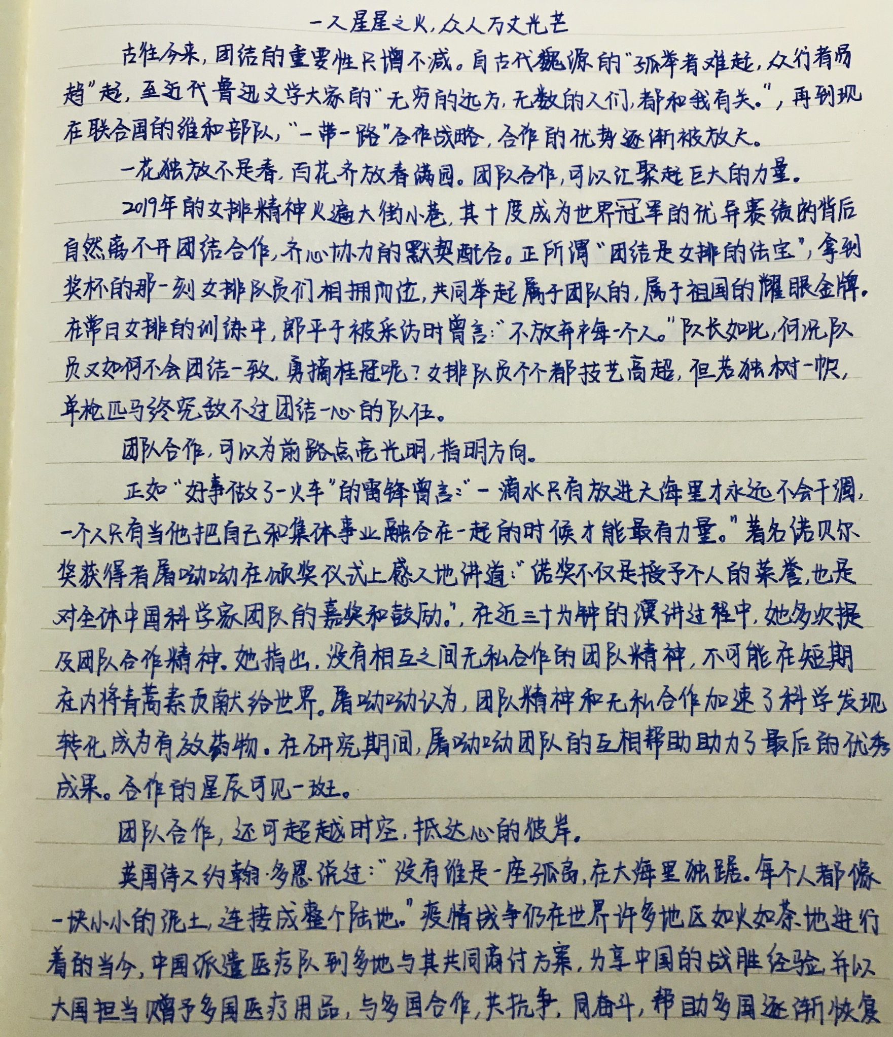 一人星星之火,众人万丈光芒 热1200 类别:议论 发表时间:2020-08-04 23:11 已有 1199 次阅读 指导老师:陈敦贤 所属学校:郑州外国语学校