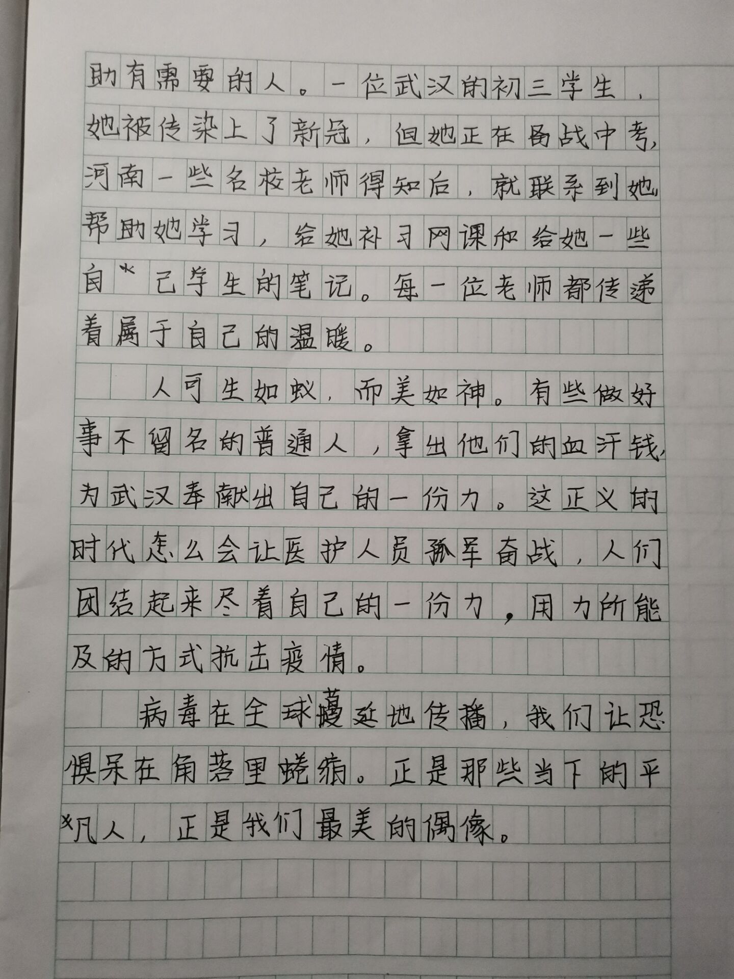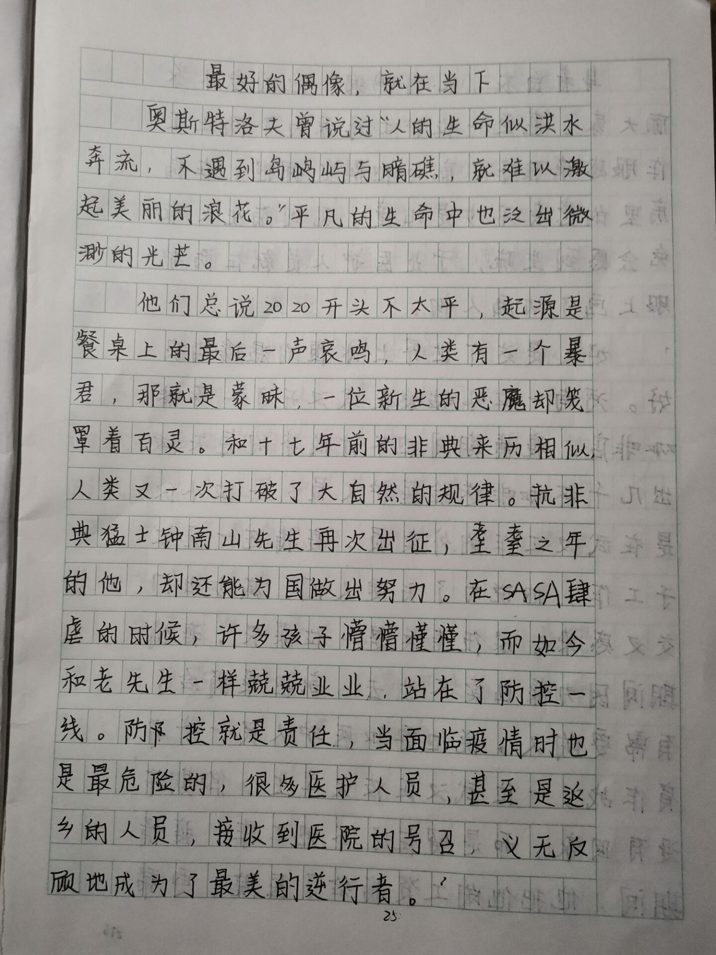 最好的偶像,就在当下 热301 类别:原创 发表时间:2020-08-30 21:18 已有 302 次阅读 指导老师:孟伟真 所属学校:郑州市二七区第74中学