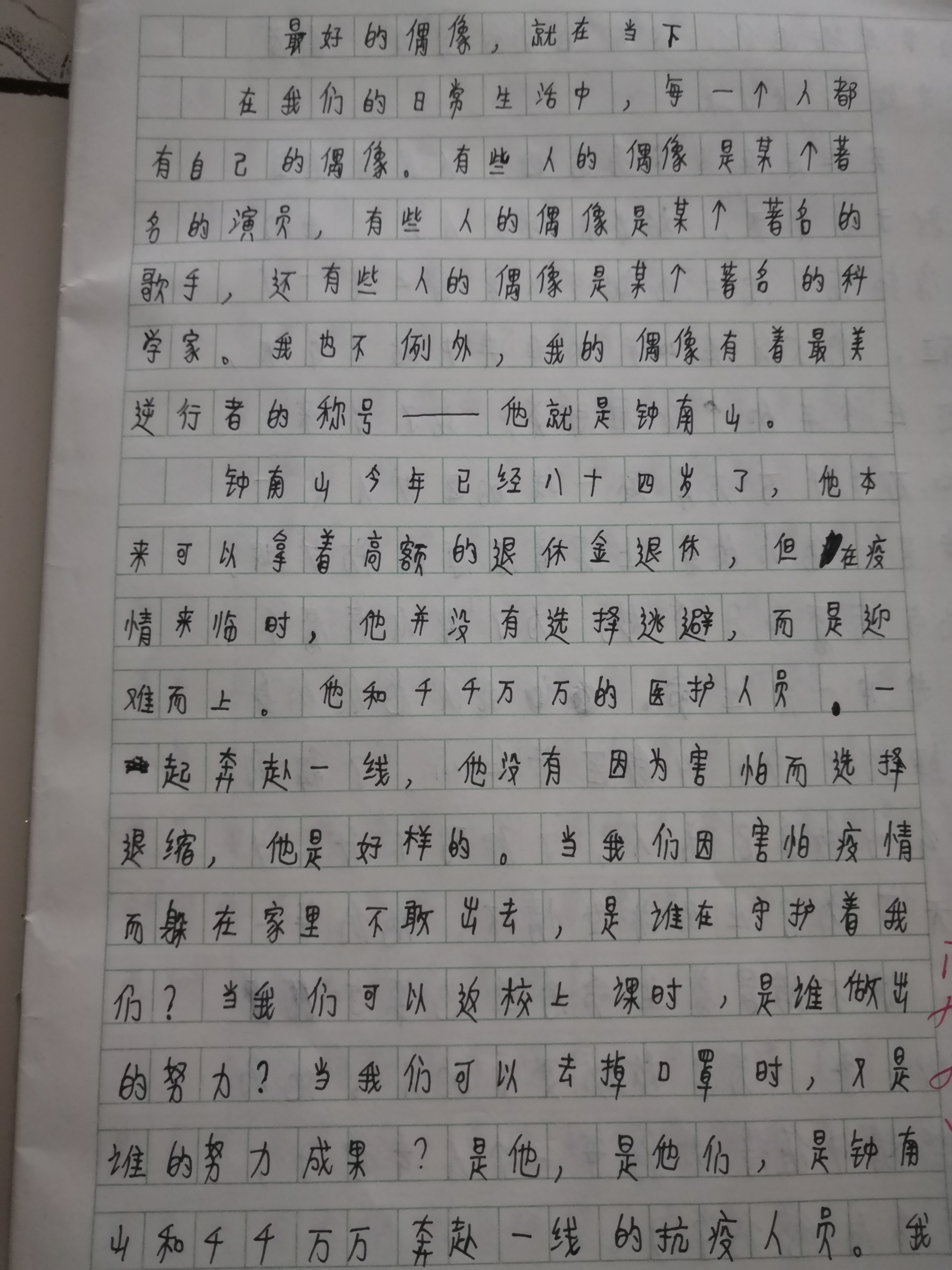 最好的偶像,就在当下 热450 类别:记叙 发表时间:2020-09-12 21:41 已有 451 次阅读 指导老师:张倩 所属学校:郑州市二七区第74中学