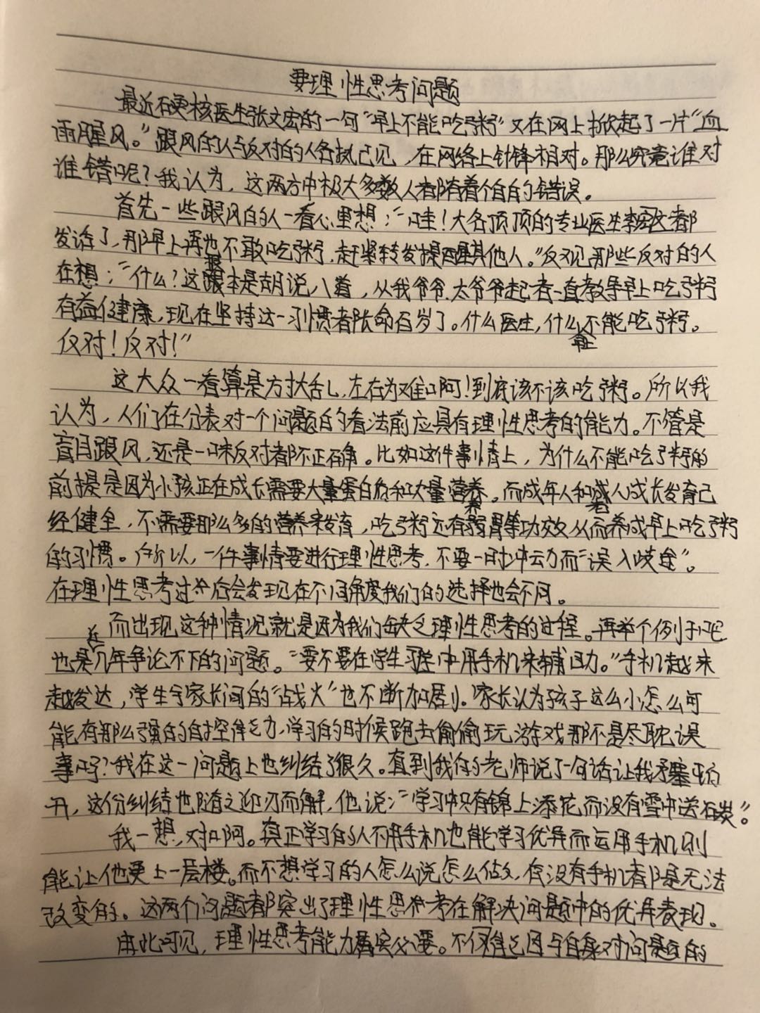 要理性思考问题 热440 类别:议论 发表时间:2020-09-13 11:14 已有 441 次阅读 指导老师:耿老师 所属学校:郑州市第二高级中学