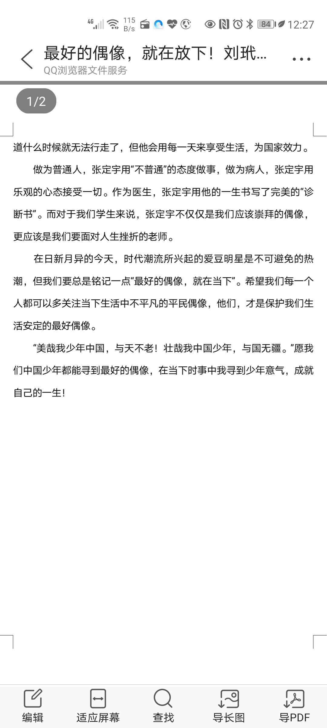 最好的偶像,就在当下 热455 类别:写人 发表时间:2020-09-21 12:31 已有 456 次阅读 指导老师:王英英 所属学校:郑州市二七区第74中学