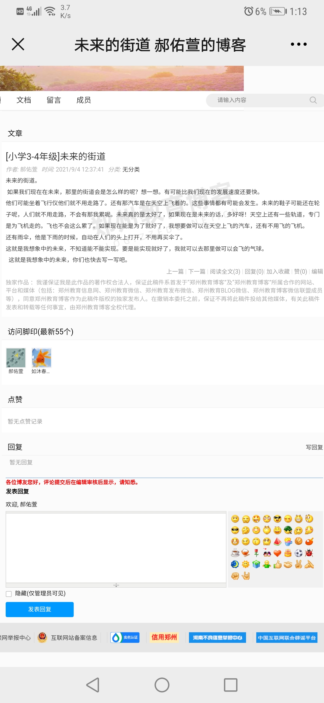 未来的街道 热601 类别:说明 发表时间:2021-09-13 13:15 已有 602 次阅读 指导老师:朱运香 所属学校:中牟县城东路小学