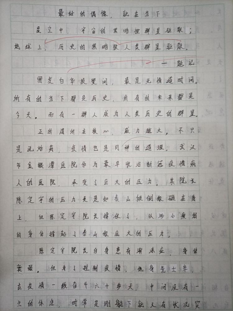 最好的偶像,就在当下 热2332 类别:记叙 发表时间:2020-10-04 16:56 已有 2333 次阅读 指导老师:郑瑾瑾 所属学校:郑州市二七区第74中学