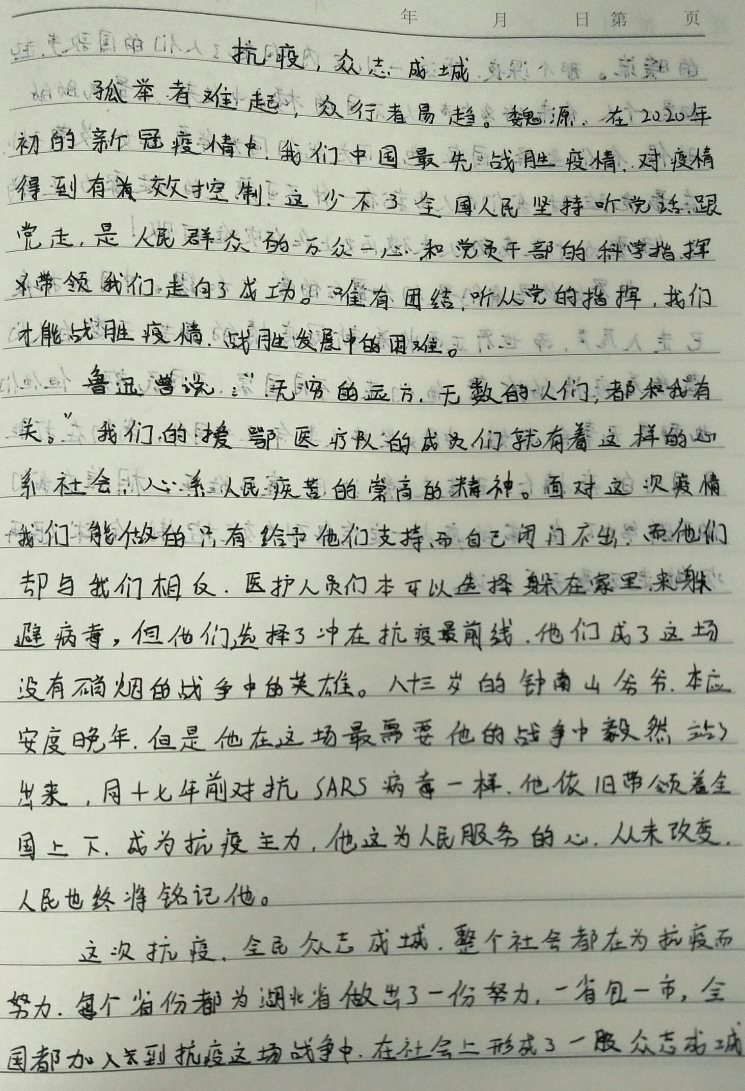 抗疫,众志成城 热630 类别:议论 发表时间:2020-10-06 14:07 已有 631 次阅读 指导老师:魏迎锋 所属学校:郑州市第九中学