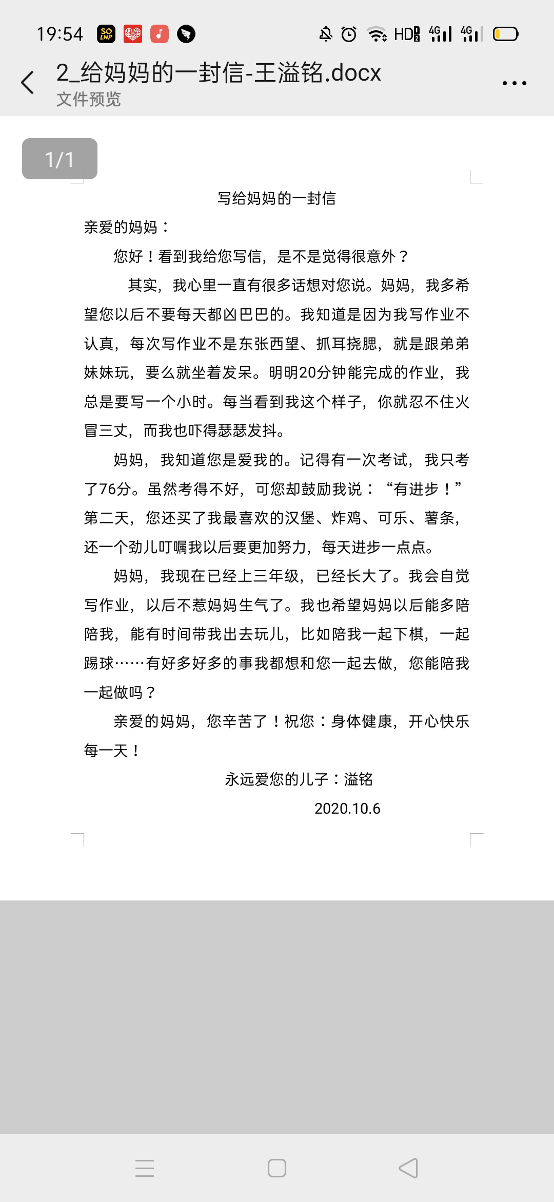 写给妈妈的一封信