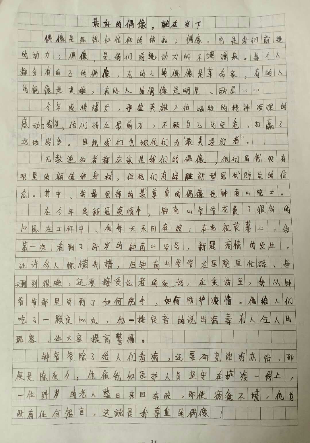 最好的偶像,就在当下 热694 类别:写人 发表时间:2020-10-08 10:00 已有 695 次阅读 指导老师:徐少锋 所属学校:黄河科技学院附属中学