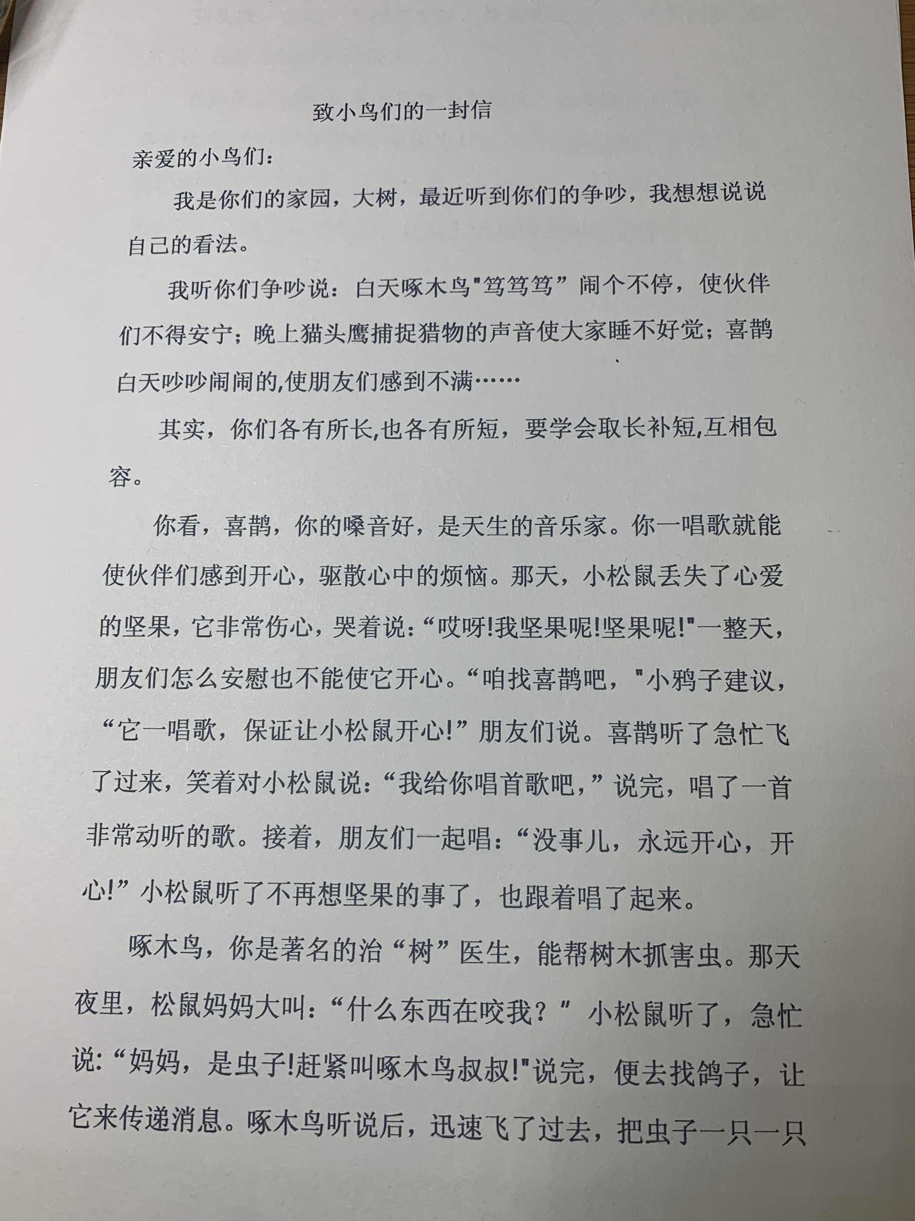 致小鸟们的一封信 热764 类别:抒情 发表时间:2020-10-24 21:43 已有 765 次阅读 指导老师:刘娟 所属学校:河南省实验学校郑东小学