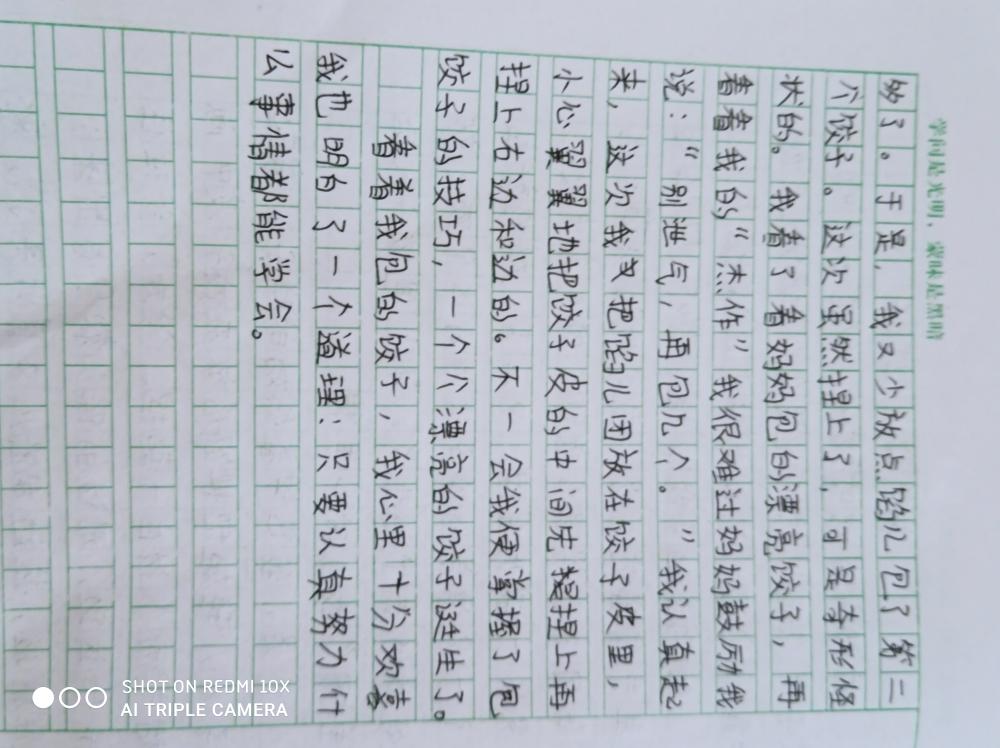 我学会了包饺子 热648 类别:写人 发表时间:2021-07-15 11:39 已有 649 次阅读 指导老师:吴亚荣 所属学校:中牟县广惠街街道办事处岗头桥小学