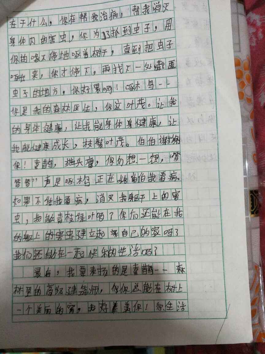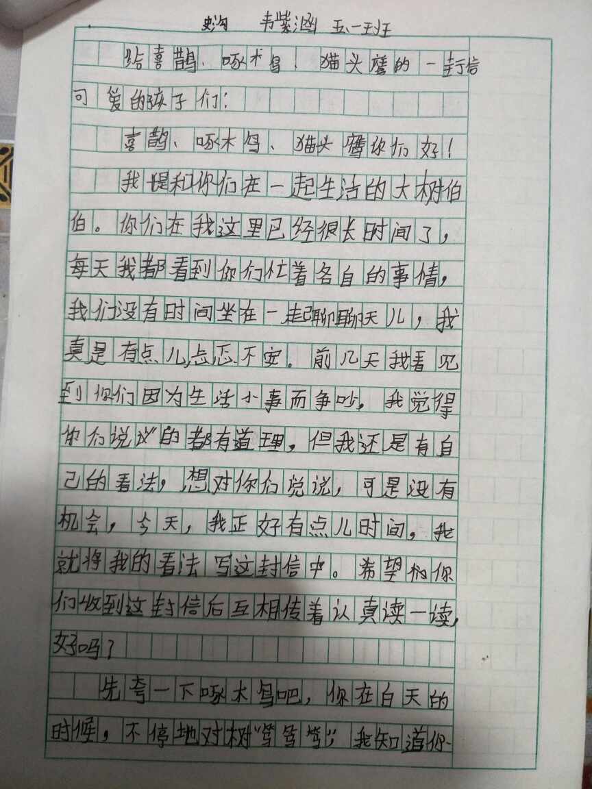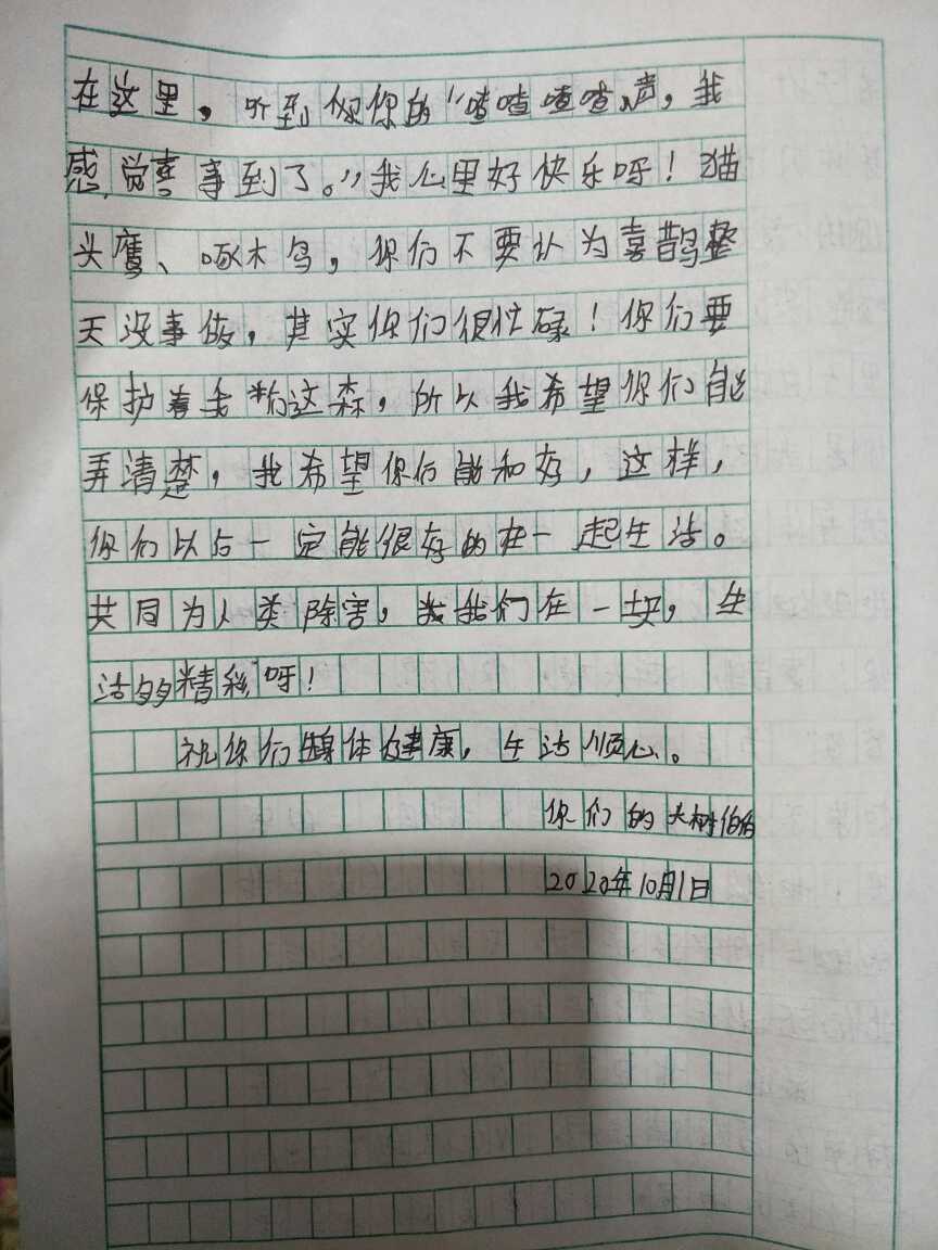 给喜鹊,啄木鸟,猫头鹰的一封信。 热710 类别:其他 发表时间:2020-10-10 22:29 已有 711 次阅读 指导老师:郑春月 所属学校:新密市白寨镇史沟小学