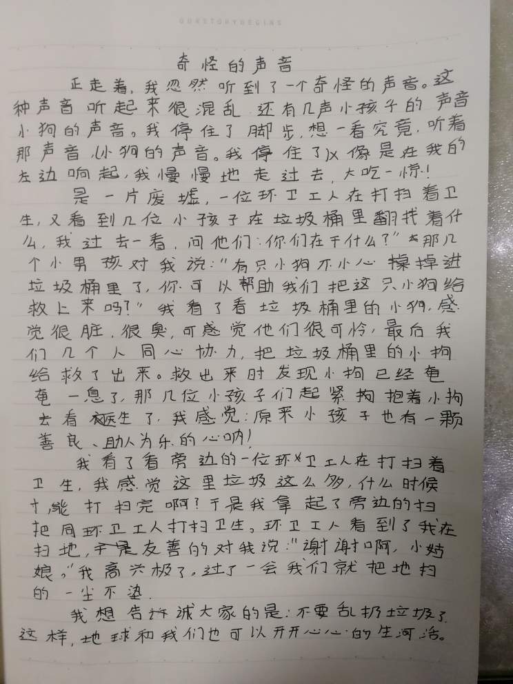 奇怪的声音 热290 类别:记叙 发表时间:2020-10-11 20:55 已有 291 次阅读 指导老师:张慧玲 所属学校:新密市金凤路小学