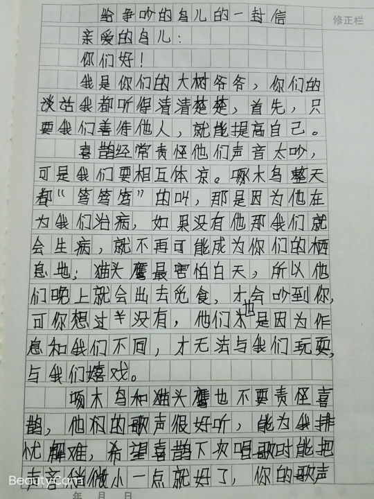 给争吵的鸟儿的一封信 热516 类别:抒情 发表时间:2020-10-11 23:36 已有 517 次阅读 指导老师:郝彩虹 所属学校:新密市金凤路小学