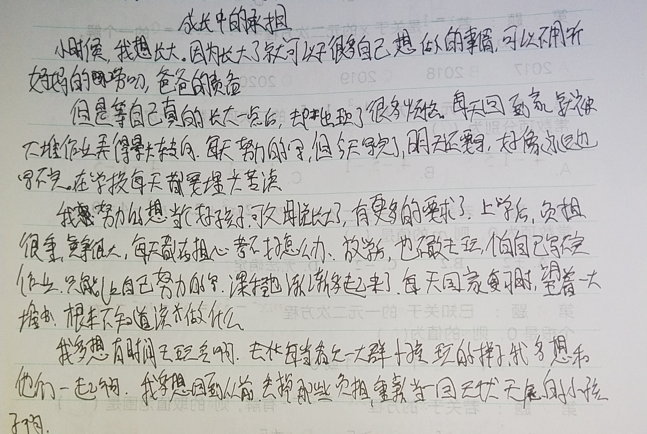 成长中的承担 热311 类别:记叙 发表时间:2021-09-09 19:45 已有 312 次阅读 指导老师:马朝霞 所属学校:新郑市实验中学