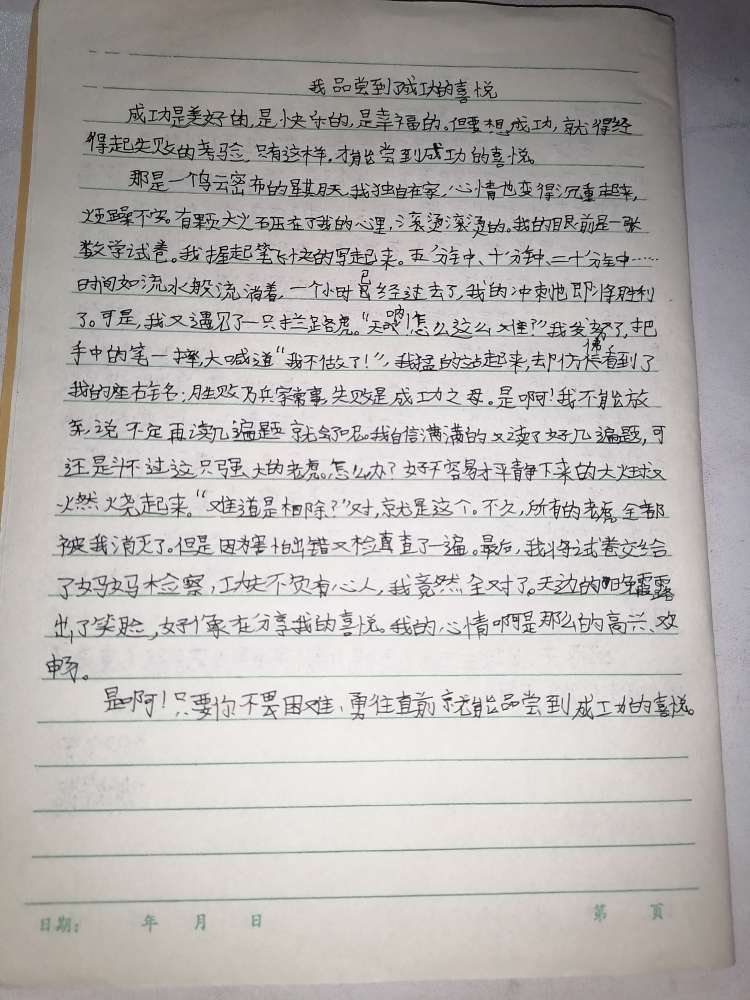 我品尝到了成功的喜悦 热702 类别:叙事 发表时间:2020-10-25 17:35 已有 703 次阅读 指导老师:刘海霞 所属学校:西大街青石河学校