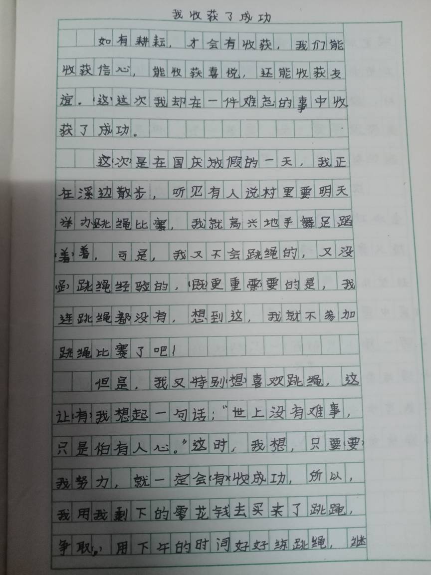 我收获了成功 热225 类别:抒情 发表时间:2020-10-18 17:10 已有 226 次阅读 指导老师:赵晓丽 所属学校:新密市白寨镇史沟小学