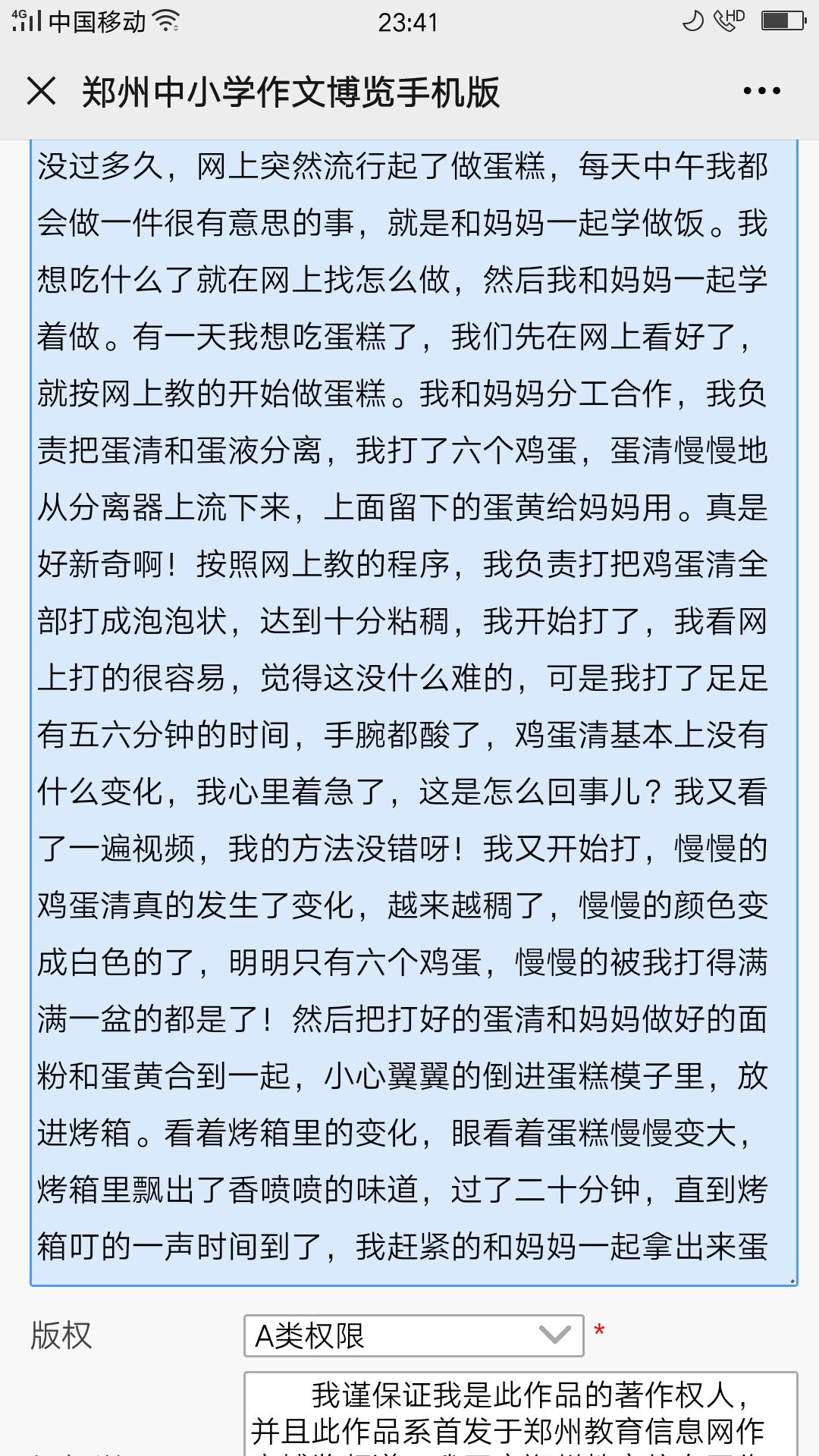 版权说明: A类权限 我谨保证我是此作品的著作权人,并且此作品系首发于郑州教育信息网作文博览频道。我同意郑州教育信息网作文博览频道作为此作品版权的独占代理人。在撤销本委托之前,我不再将此作品投给其他媒体,有关此作品发表和转载等任何事宜,由郑州教育信息网作文博览频道全权负责。未经郑州教育信息网作文博览频道转授权,其他媒体一律不得转载。 |