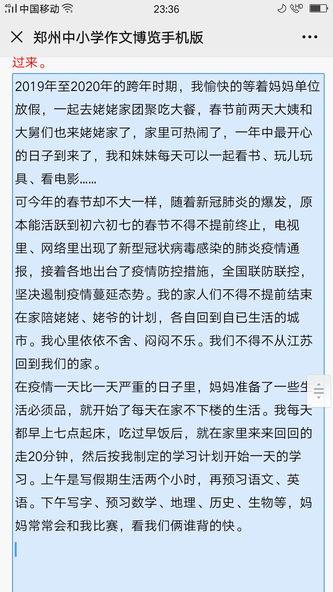 “疫情”时期的“多味”生活 热204 类别:叙事 发表时间:2020-10-17 23:47 已有 205 次阅读 指导老师:李晓雯 所属学校:新密市市直一初中