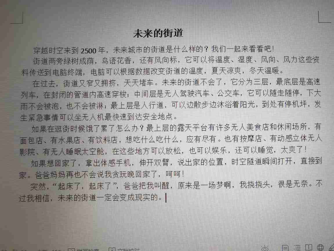 未来的街道 热281 类别:记叙 发表时间:2021-07-25 23:03 已有 282 次阅读 指导老师:付秋艳 所属学校:金水区文化绿城小学