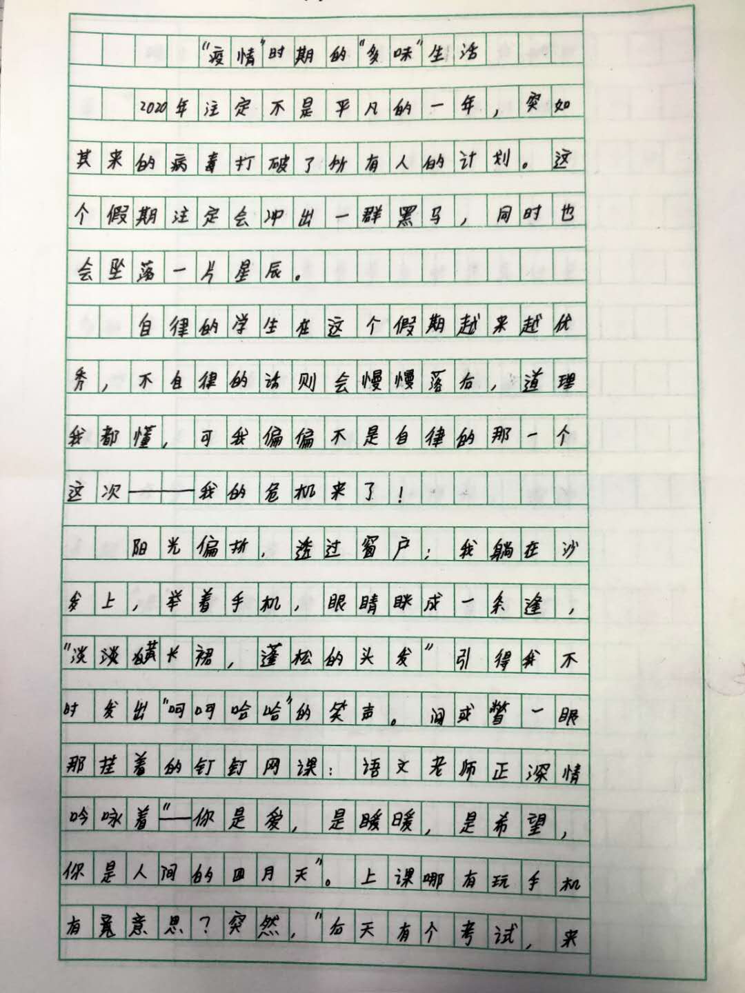 “疫情”时期的“多味”生活 热306 类别:记叙 发表时间:2020-10-18 19:11 已有 307 次阅读 指导老师:韩杰 所属学校:新密市市直一初中