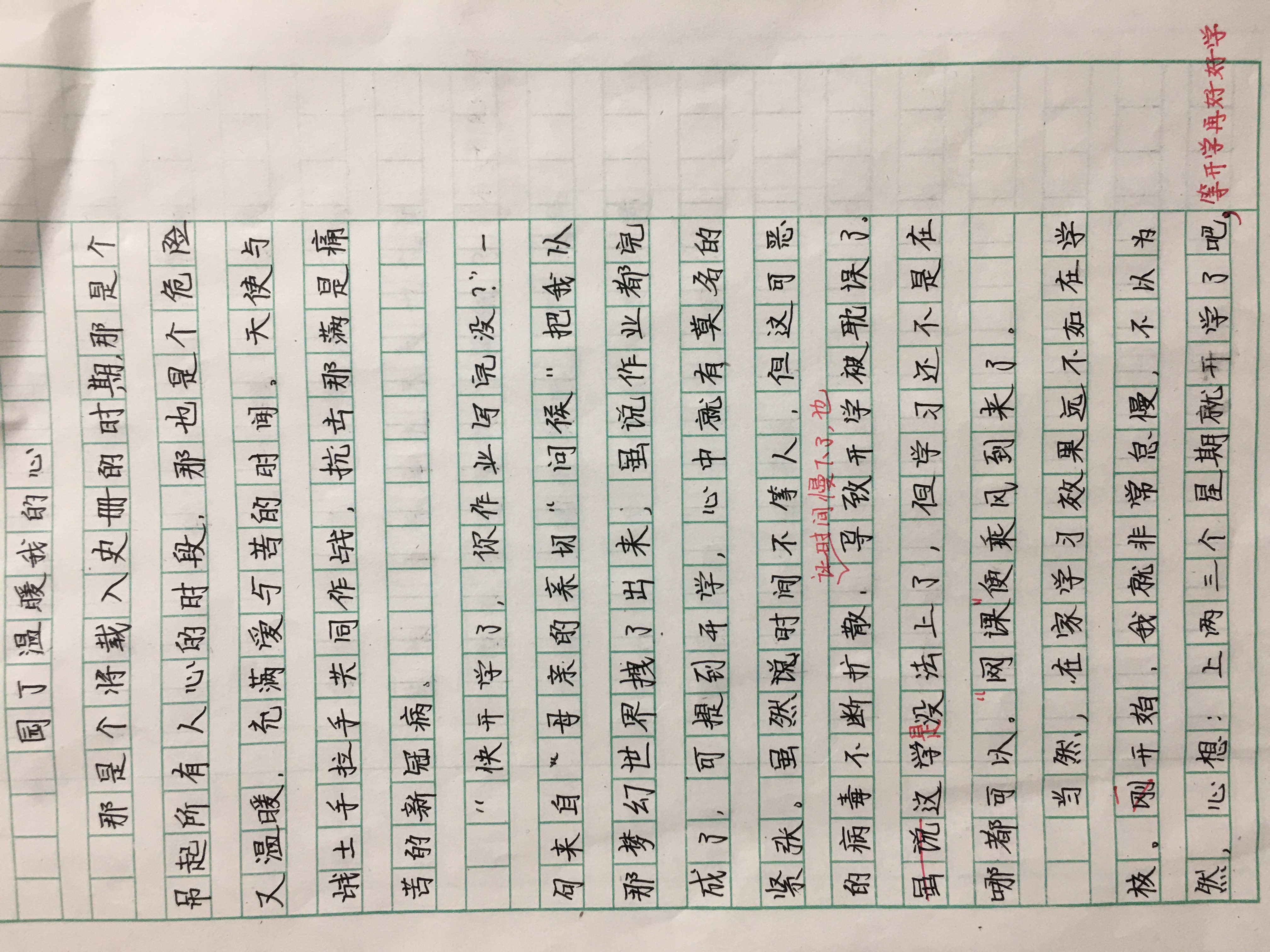 园丁温暖我的心 热480 类别:叙事 发表时间:2020-10-18 19:51 已有 481 次阅读 指导老师:薛素贞 所属学校:新密市市直一初中