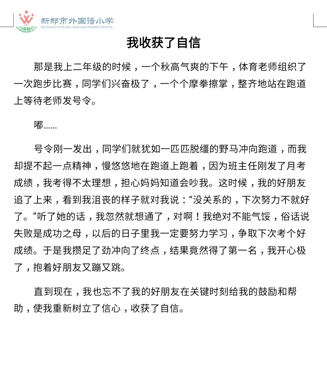 我收获了自己 热569 类别:抒情 发表时间:2020-10-19 20:05 已有 570 次阅读 指导老师:安丽萍 所属学校:新郑市外国语小学
