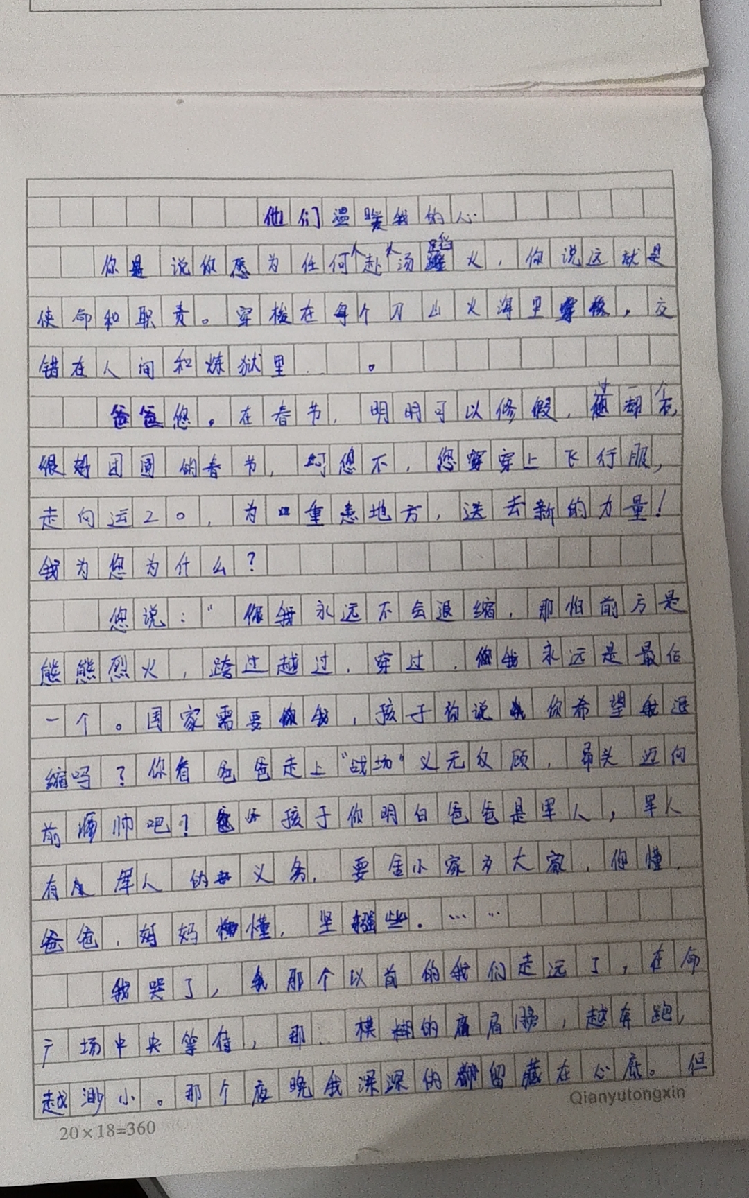 他们温暖我的心 热351 类别:其他 发表时间:2020-10-20 14:01 已有 352 次阅读 指导老师:高丽 所属学校:郑州经纬中学