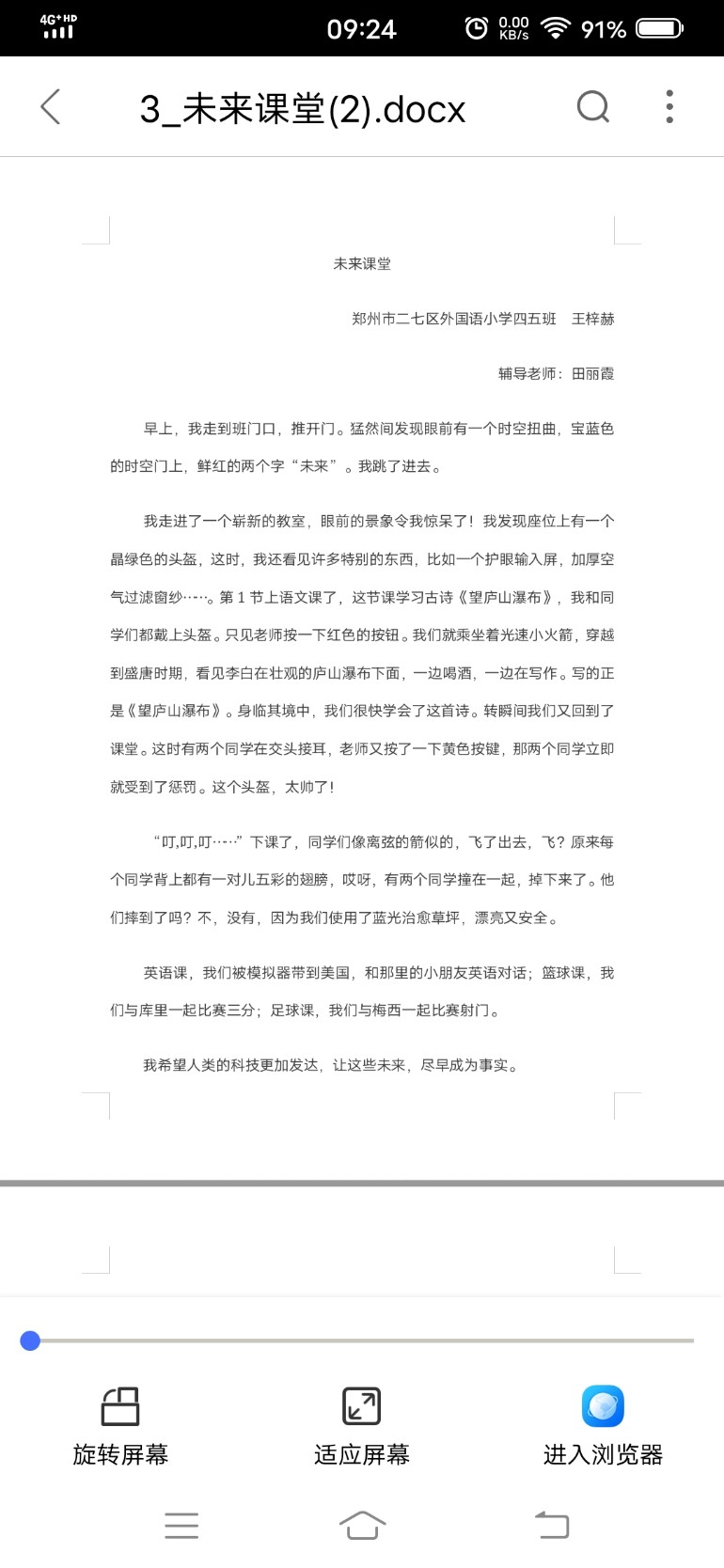 未来课堂 热457 类别:原创 发表时间:2020-10-21 09:27 已有 458 次阅读 指导老师:田丽霞 所属学校:郑州市二七区外国语小学