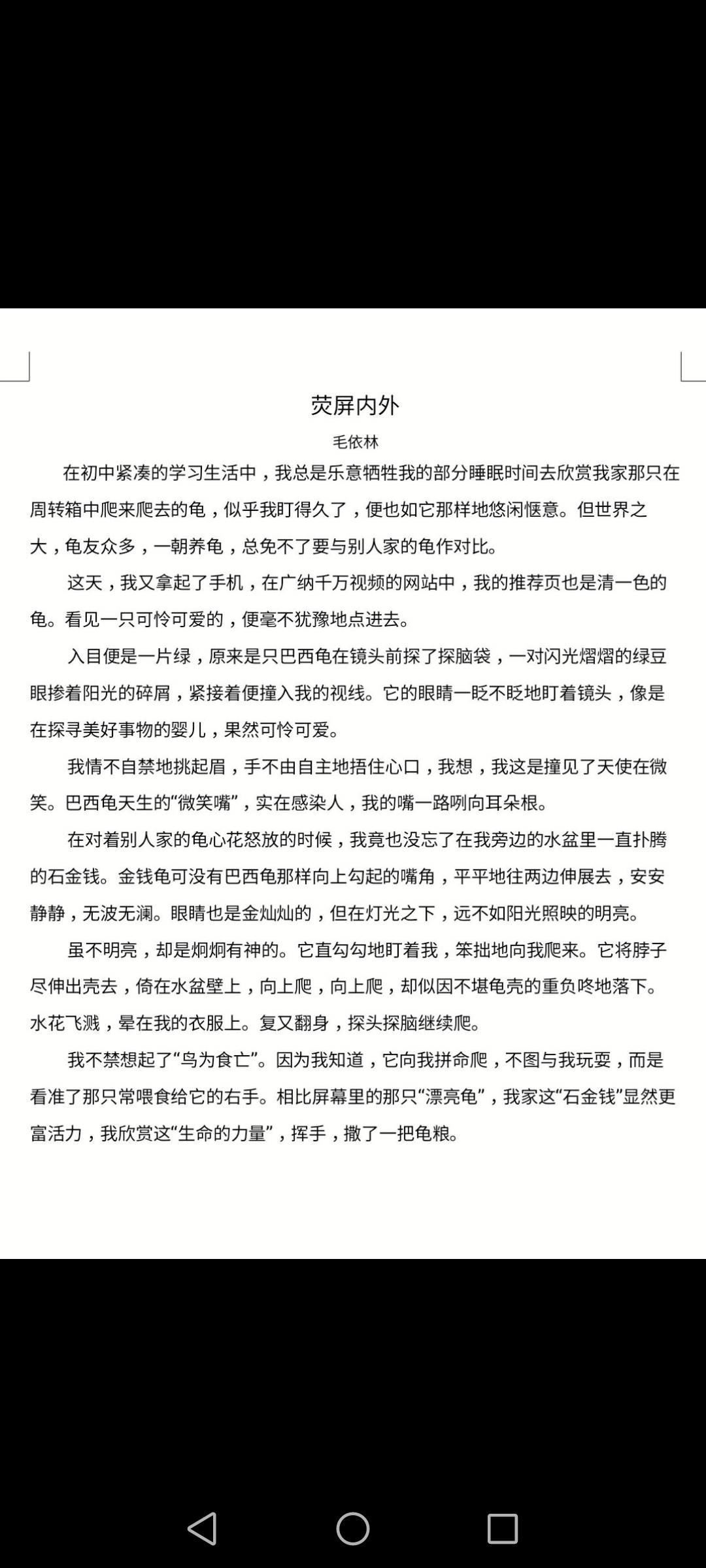 荧屏内外 热298 类别:记叙 发表时间:2020-10-22 21:08 已有 299 次阅读 指导老师:李想 所属学校:郑东新区实验学校