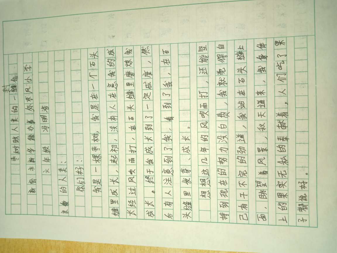 枣树致人类的一封信 热582 类别:叙事 发表时间:2020-10-28 18:13 已有 583 次阅读 指导老师:王变 所属学校:新密市新华路办事处