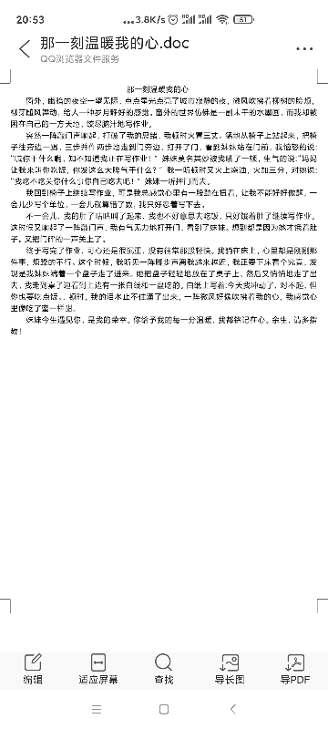 那一刻温暖我的心 热648 类别:叙事 发表时间:2020-10-25 20:56 已有 649 次阅读 指导老师:王晓蕾 所属学校:新密市米村镇初级中学