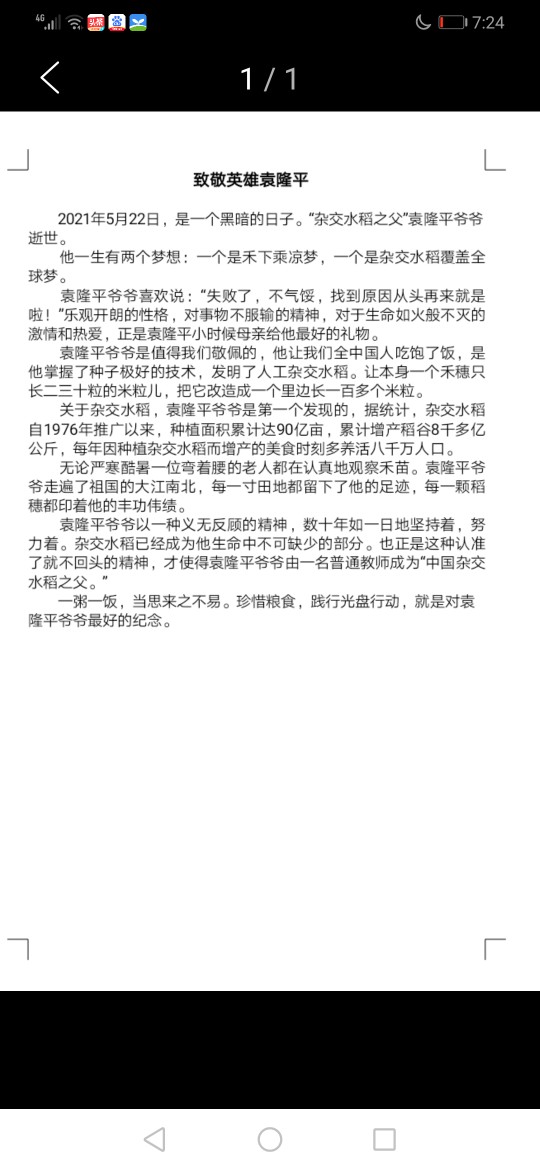 致敬英雄袁隆平 热520 类别:写人 发表时间:2021-08-07 20:43 已有 521 次阅读 指导老师:张敏 所属学校:金水区中方园双语学校