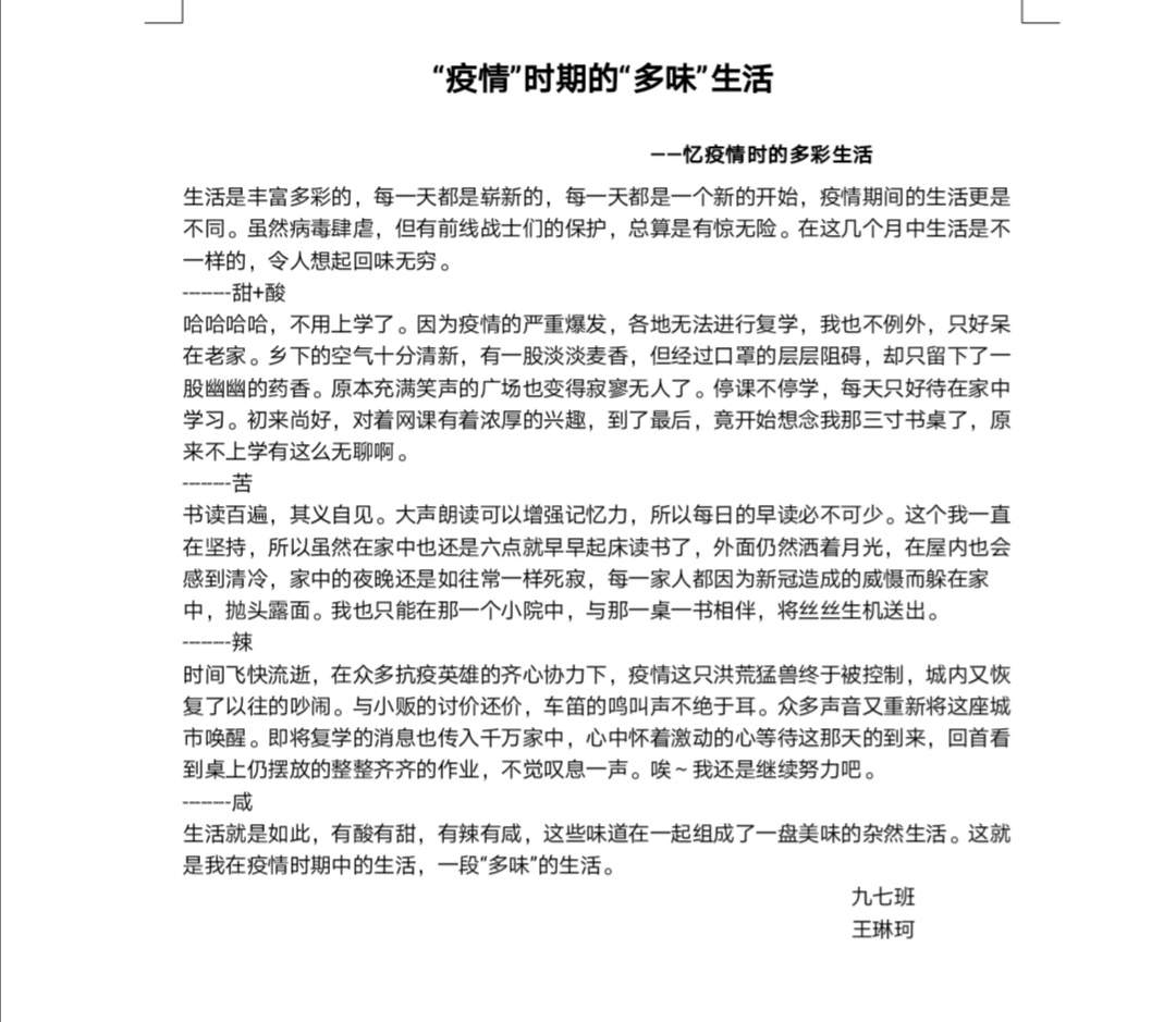 “疫情”时期的“多味”生活 热632 类别:记叙 发表时间:2020-10-26 20:52 已有 632 次阅读 指导老师:张蒙蒙 所属学校:郑州市第十九高级中学