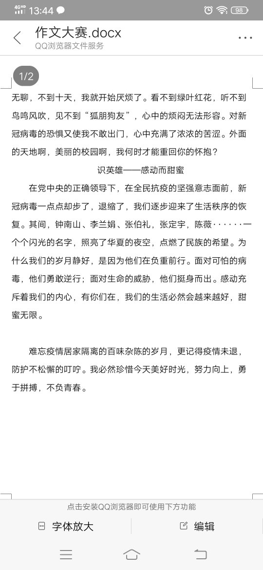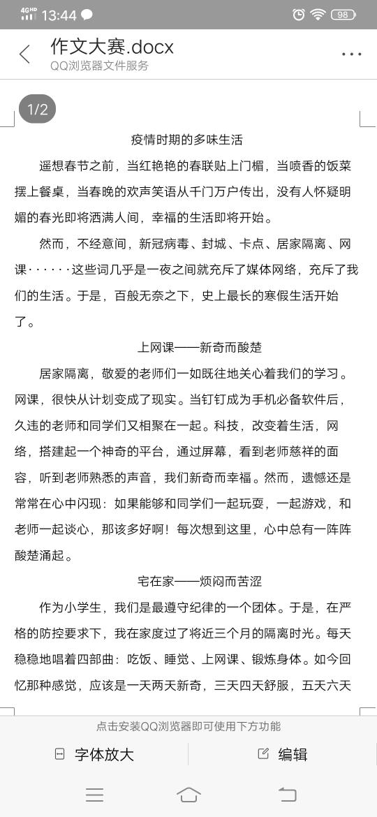 “疫情”时期的“多味”生活 热682 类别:叙事 发表时间:2020-10-26 13:46 已有 683 次阅读 指导老师:袁晓朋 所属学校:新密市青屏街道办事处初级中学