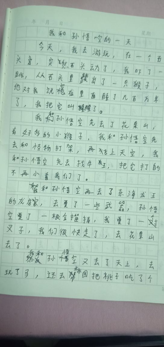 我和孙悟空的一天 热389 类别:写人 发表时间:2020-10-26 19:11 已有 390 次阅读 指导老师:李书勤 所属学校:新密市市直第二小学