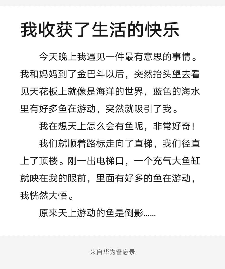 我收获了家庭生活的快乐 热584 类别:叙事 发表时间:2020-10-26 20:33 已有 585 次阅读 指导老师:窦春玲 所属学校:新密市市直第二小学