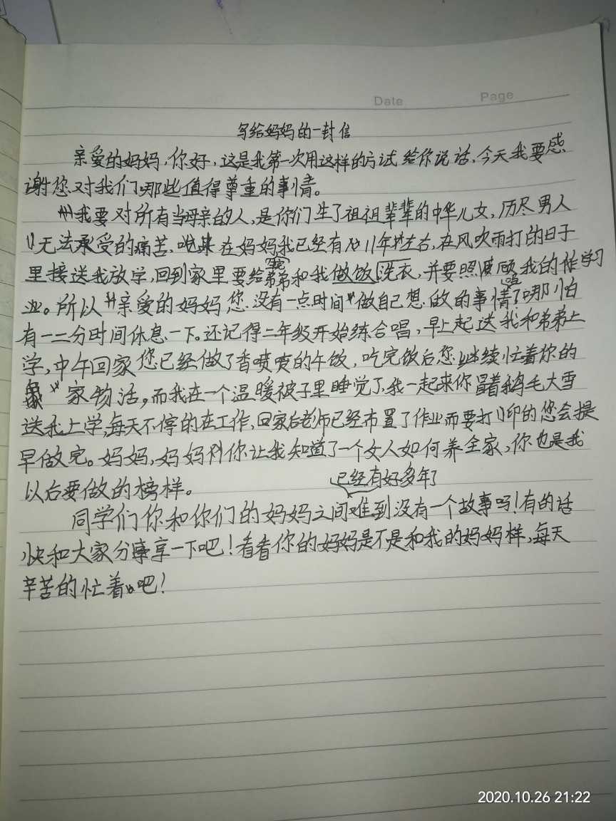 写给妈妈的一封信 热916 类别:写人 发表时间:2020-10-26 21:23 已有 917 次阅读 指导老师:窦 所属学校:新密市市直第二小学