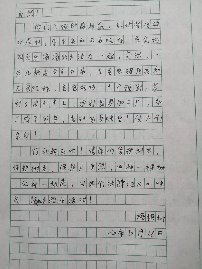 梧桐树给人类的一封信 热819 类别:状物 发表时间:2020-10-28 17:46 已有 820 次阅读 指导老师:王变 所属学校:新密市新华路办事处东风小学