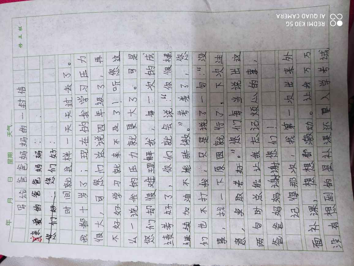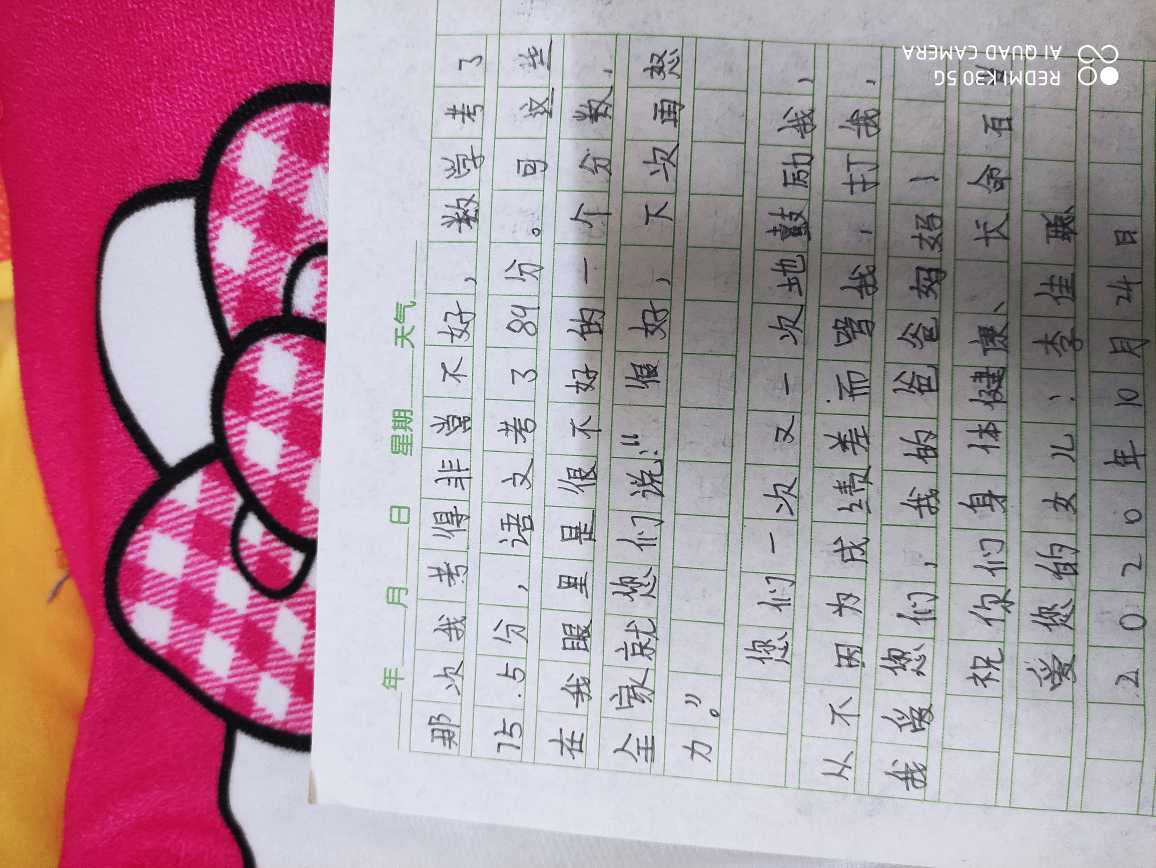 写给爸爸妈妈的一封信 热513 类别:写人 发表时间:2020-10-28 21:05 已有 514 次阅读 指导老师:冯晓利 所属学校:新密市市直第二小学