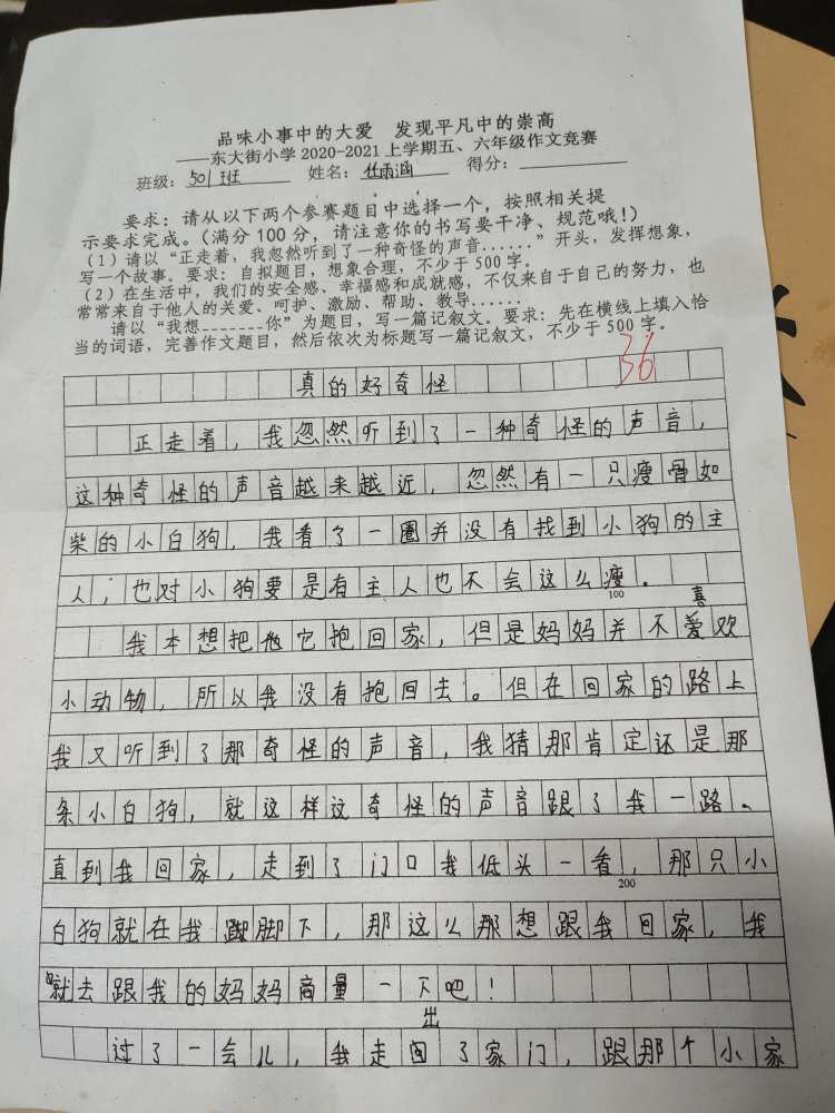 真的好奇怪 热502 类别:记叙 发表时间:2020-10-28 21:02 已有 503 次阅读 指导老师:刘晓慧 所属学校:新密市东大街小学