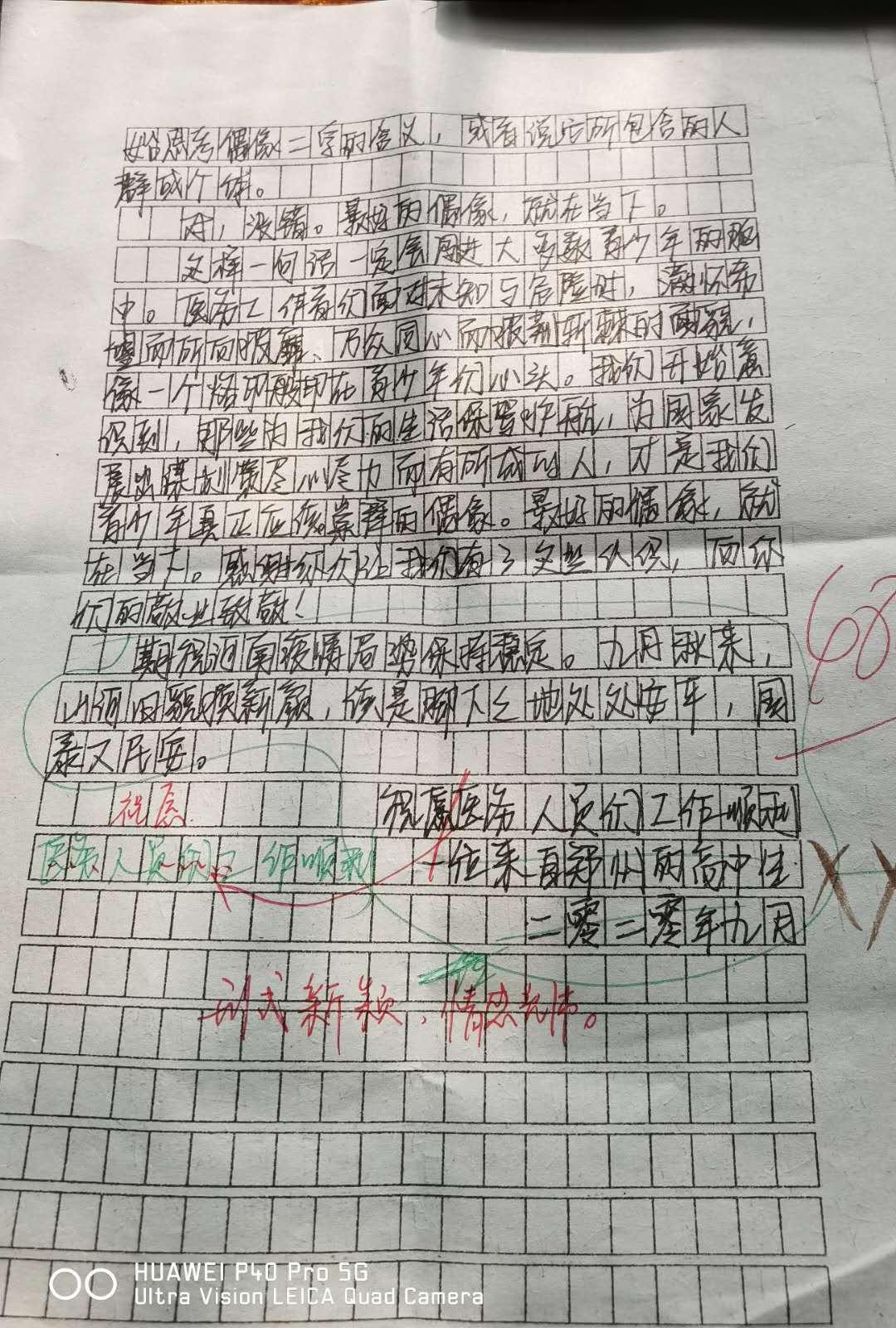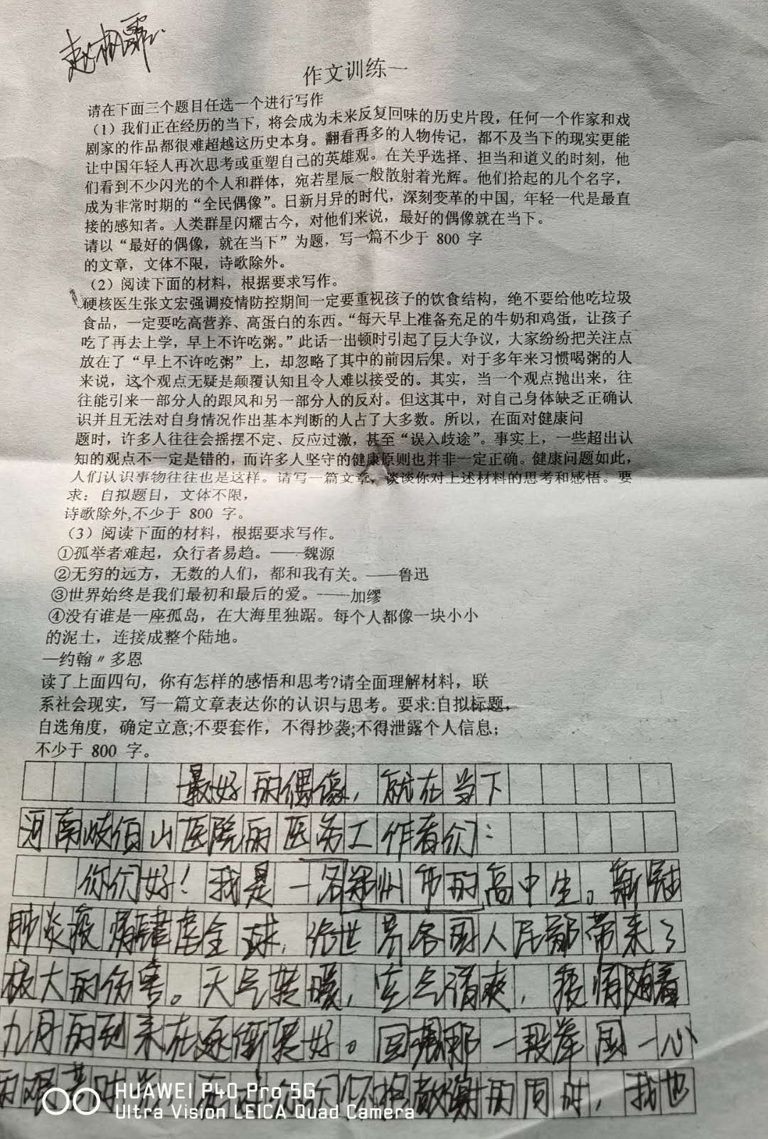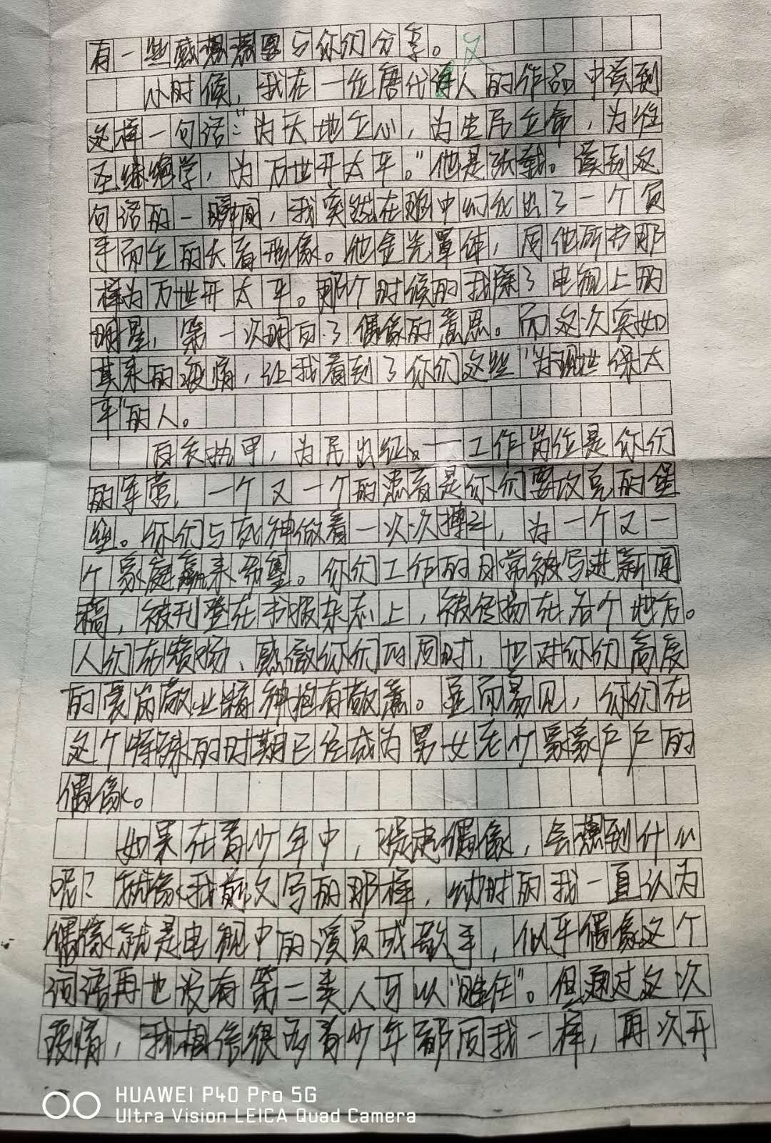 最好的偶像,就在当下 热2087 类别:原创 发表时间:2020-10-29 12:47 已有 2088 次阅读 指导老师:王华 所属学校:郑州市第二高级中学