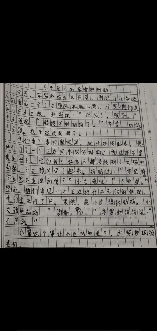 乐于助人的李雷和妈妈 热717 类别:原创 发表时间:2020-11-29 17:55 已有 718 次阅读 指导老师:赵卫利 所属学校:中牟县官渡路小学