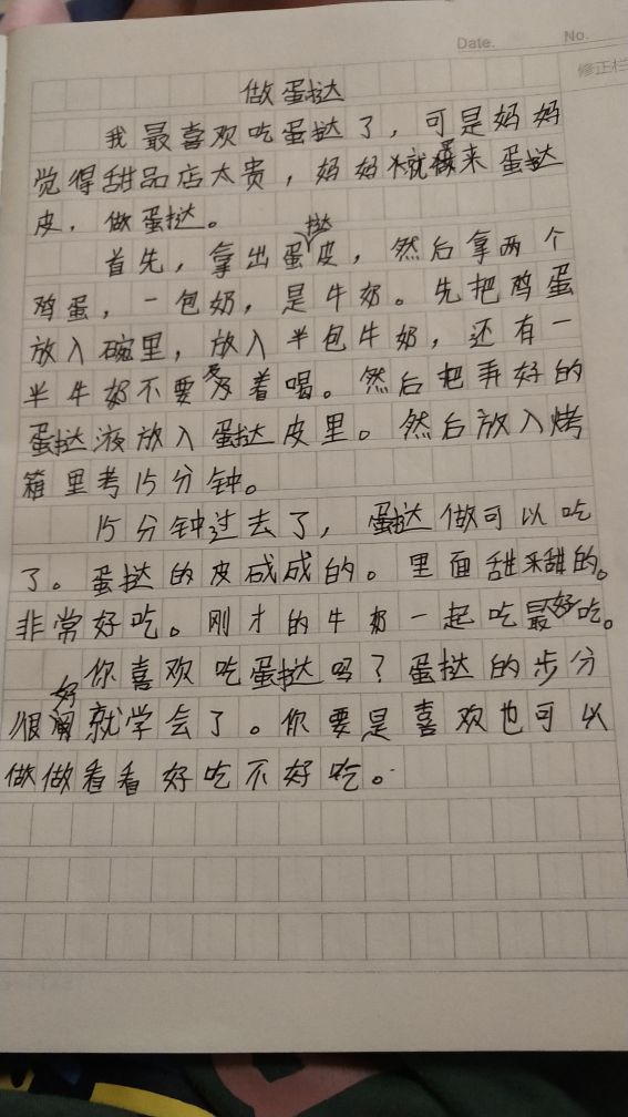做蛋挞 热491 类别:其他 发表时间:2021-08-21 12:34 已有 492 次阅读 指导老师:赵卫利 所属学校:中牟县官渡路小学