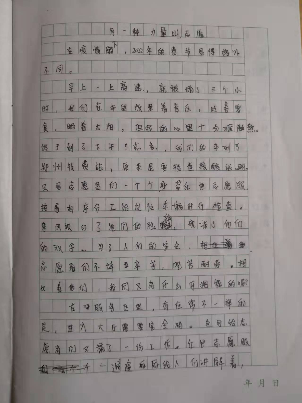 有一点力量叫志愿 热784 类别:记叙 发表时间:2022-02-16 14:14 已有 785 次阅读 指导老师:黄松 所属学校:郑州经济技术开发区外国语学校